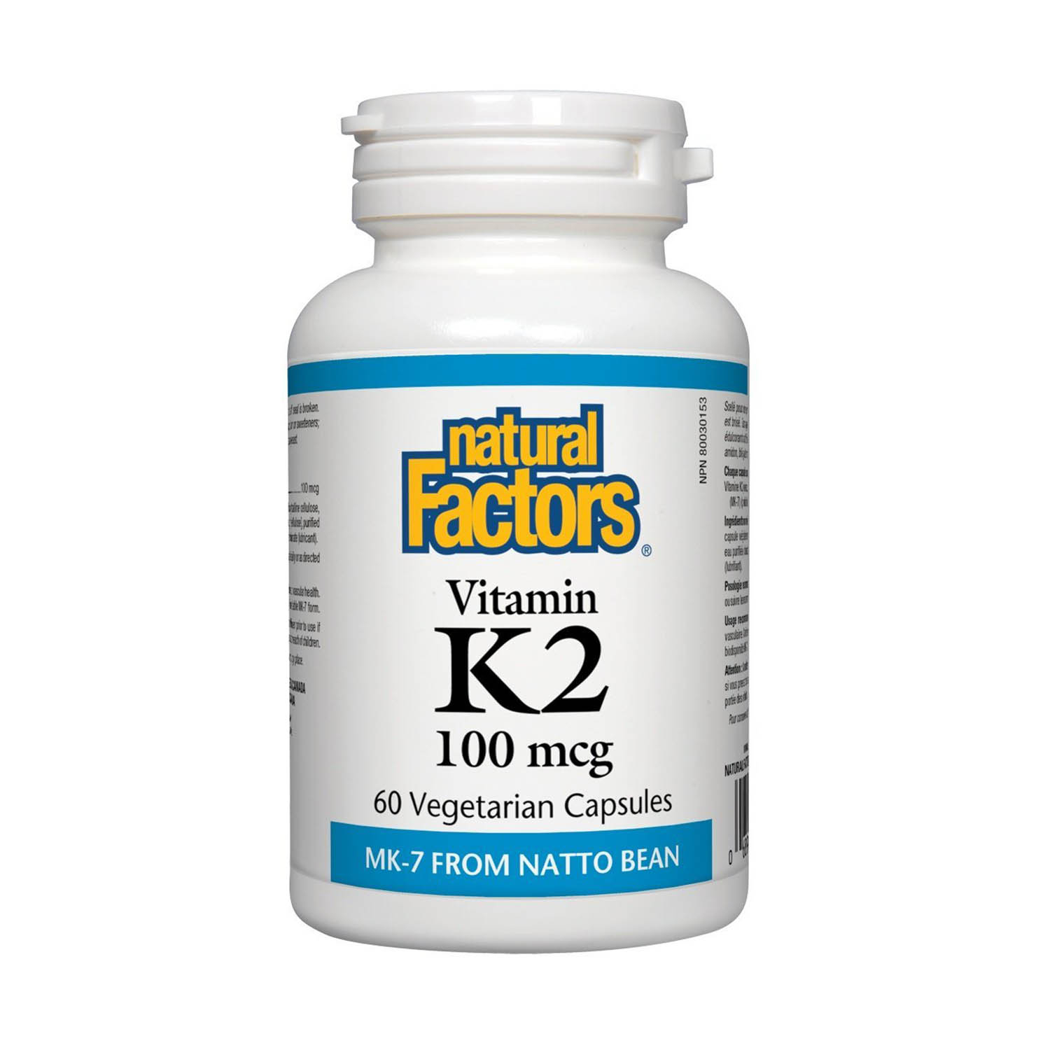 Vitamin K2 MK-7, 120 mcg de la Natural Factors este un supliment alimentar premium, formulat pentru a susține sănătatea cardiovasculară, densitatea osoasă și echilibrul metabolic prin furnizarea formei superioare și biologic active de vitamina K2 – menaquinonă-7 (MK-7), derivată natural din boabe fermentate de natto. Această formă de vitamina K este recunoscută pentru biodisponibilitatea ridicată și durata lungă de activitate în organism, ceea ce o face esențială pentru reglarea calciului, activarea proteinelor dependente de vitamina K și menținerea unei bune funcționări a sistemului circulator și osos.