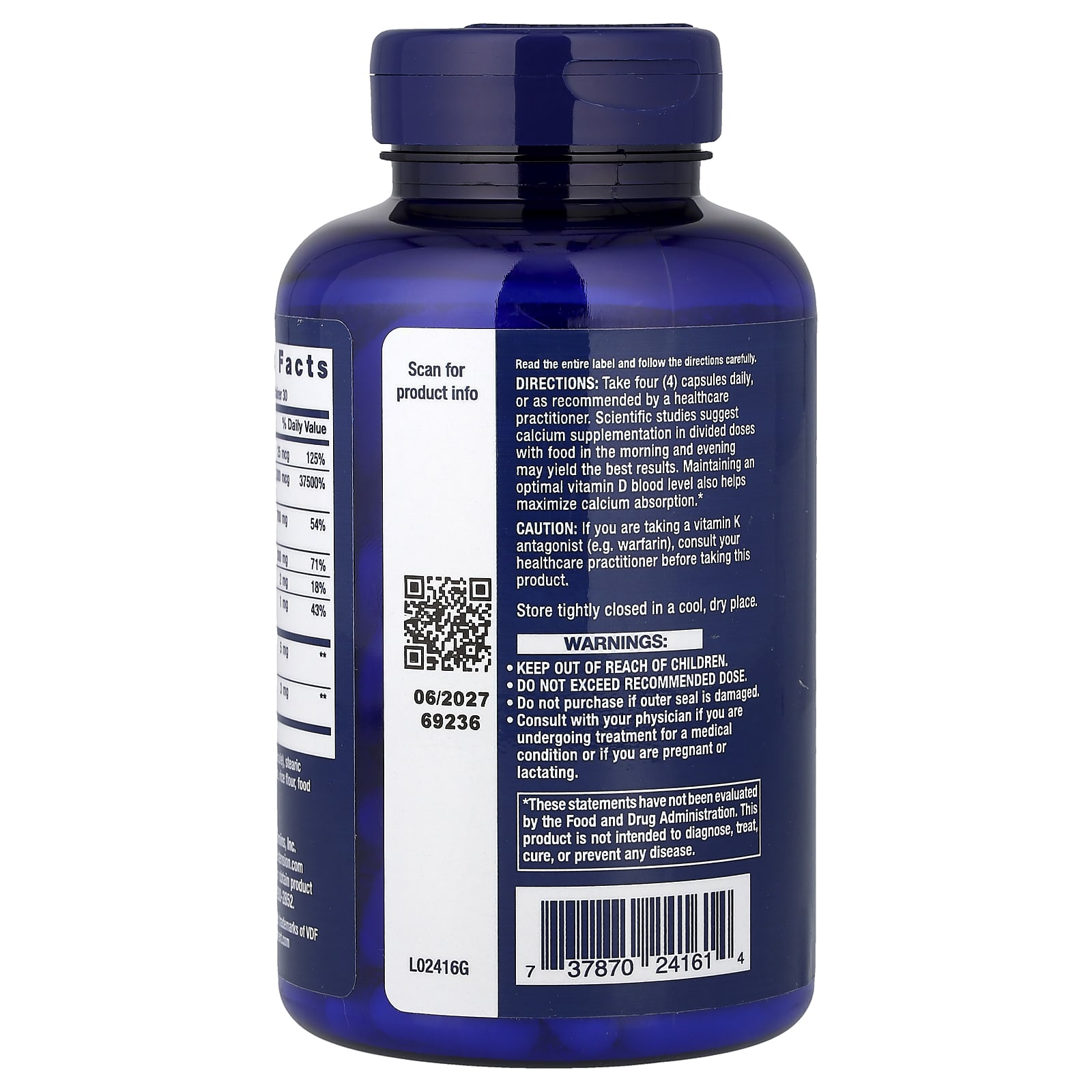 | Vitamina K2 [sub formă de menachinonă-4 (45 mg)] | 45.000 mcg | 37.500% |
