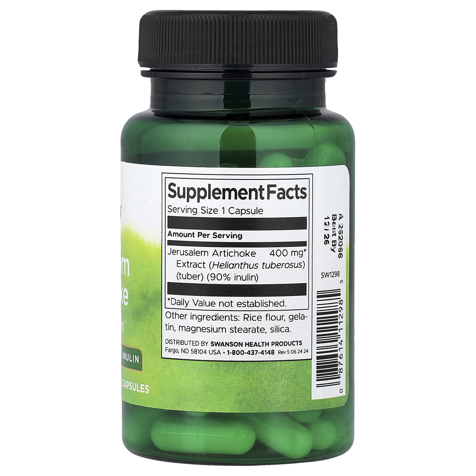 Jerusalem Artichoke Prebiotic 400 mg, Swanson este un supliment alimentar cu rol prebiotic, formulat din tuberculul de anghinare de Ierusalim (Helianthus tuberosus), standardizat la 90% inulină. Inulina este o fibră solubilă cu acțiune selectivă asupra bacteriilor benefice din intestin, contribuind la menținerea echilibrului microbiomului și la susținerea sănătății digestive. Fiecare porție furnizează 400 mg de extract concentrat, ceea ce transformă produsul într-o opțiune practică pentru cei care doresc suport prebiotic constant, fără a depinde exclusiv de aportul alimentar de fibre fermentabile.