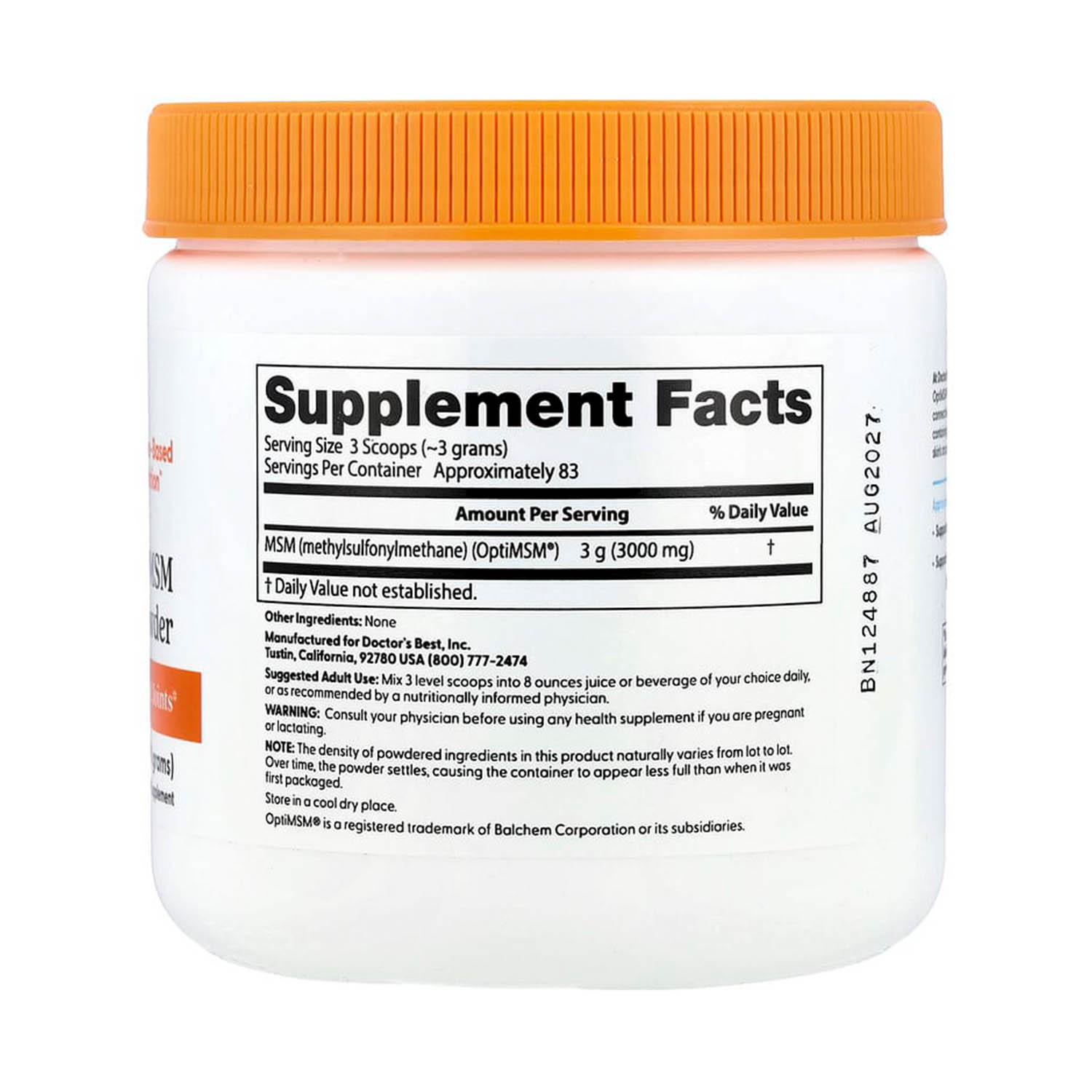 MSM Powder with OptiMSM®, Doctor’s Best, oferă 3 g de metilsulfonilmetan de înaltă puritate într-o formă ușor de integrat în rutina ta. Este sprijinul structural de care ai nevoie pentru mișcare fără griji, recuperare inteligentă și frumusețe din interior – o formulă dedicată confortului articular, sănătății țesutului conjunctiv și unui stil de viață cu adevărat activ.