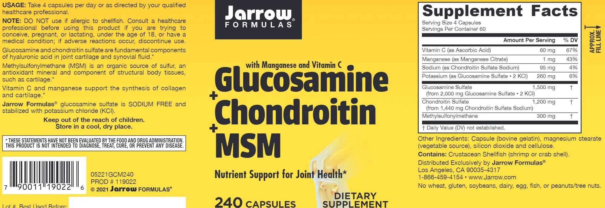 Glucosamine Chondroitin and MSM are compounds found naturally in your cartilage. Cartilage is a major type of connective tissue in your body. One of the many important purposes of cartilage is to protect and cushion the ends of bones, which is why it is found in joints. In people with osteoarthritis, this cartilage wears down, which can cause the bones to rub. Over time, this can lead to pain and decreased joint mobility, usually in the knees, hips, hands and spine.
