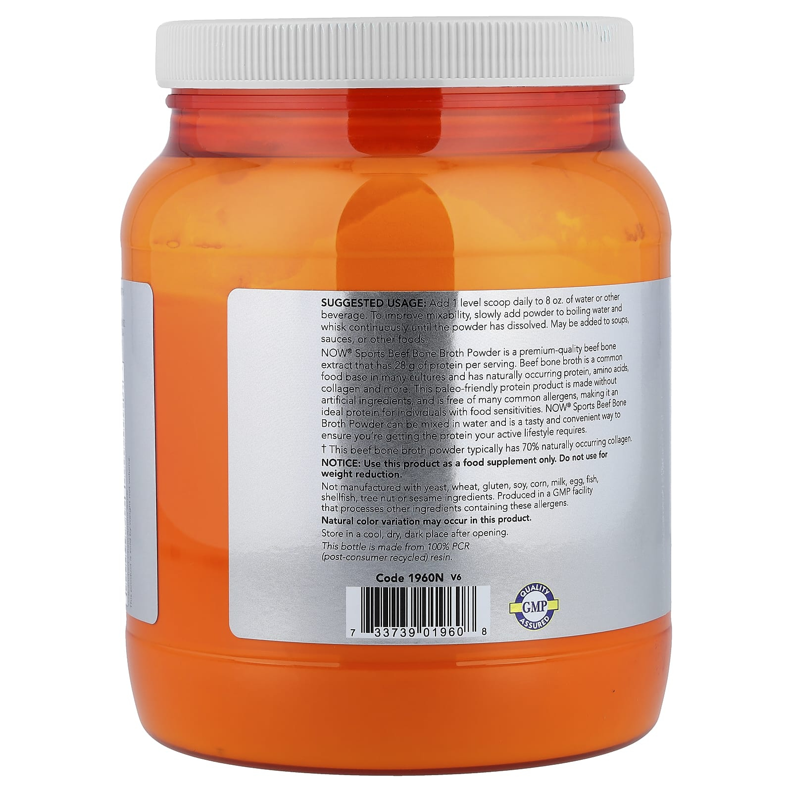 Beef Bone Broth, NOW Foods puts at your disposal a concentrated protein source from beef bone broth, with an optimal amino acid mix for joint support, muscle recovery, digestive comfort and skin beauty – simple to integrate into any health and performance-oriented routine.