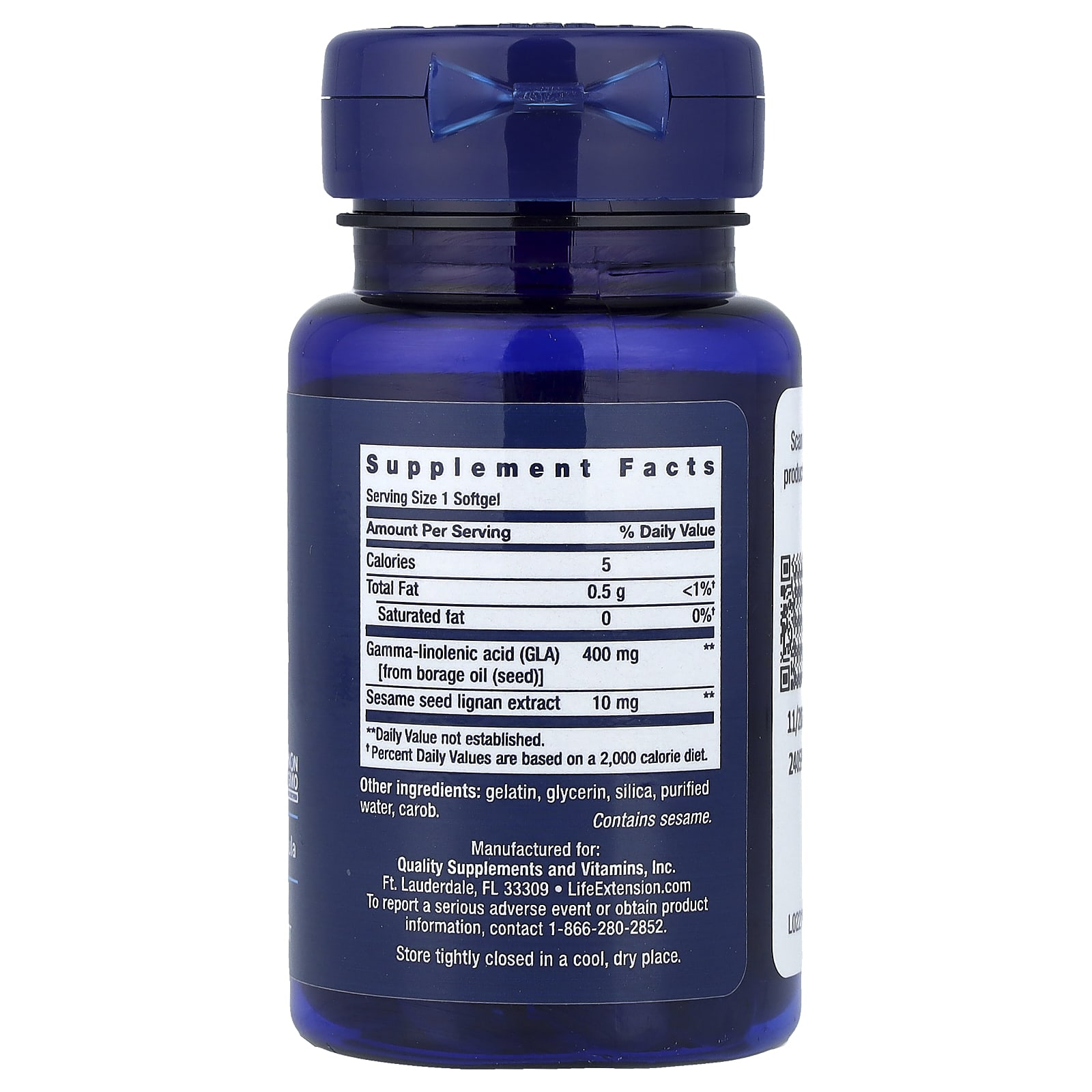 Mega GLA Sesame Lignans (Borage Oil), Life Extension offers a concentrated and intelligent combination of GLA 400 mg and sesame lignans 10 mg, oriented towards skin hydration, inflammatory balance and joint comfort, as well as supporting hormonal balance and antioxidant protection. Through this formula, the body receives functional lipids and phytonutrients that support cellular integrity, resilience and vitality in the modern daily rhythm.
