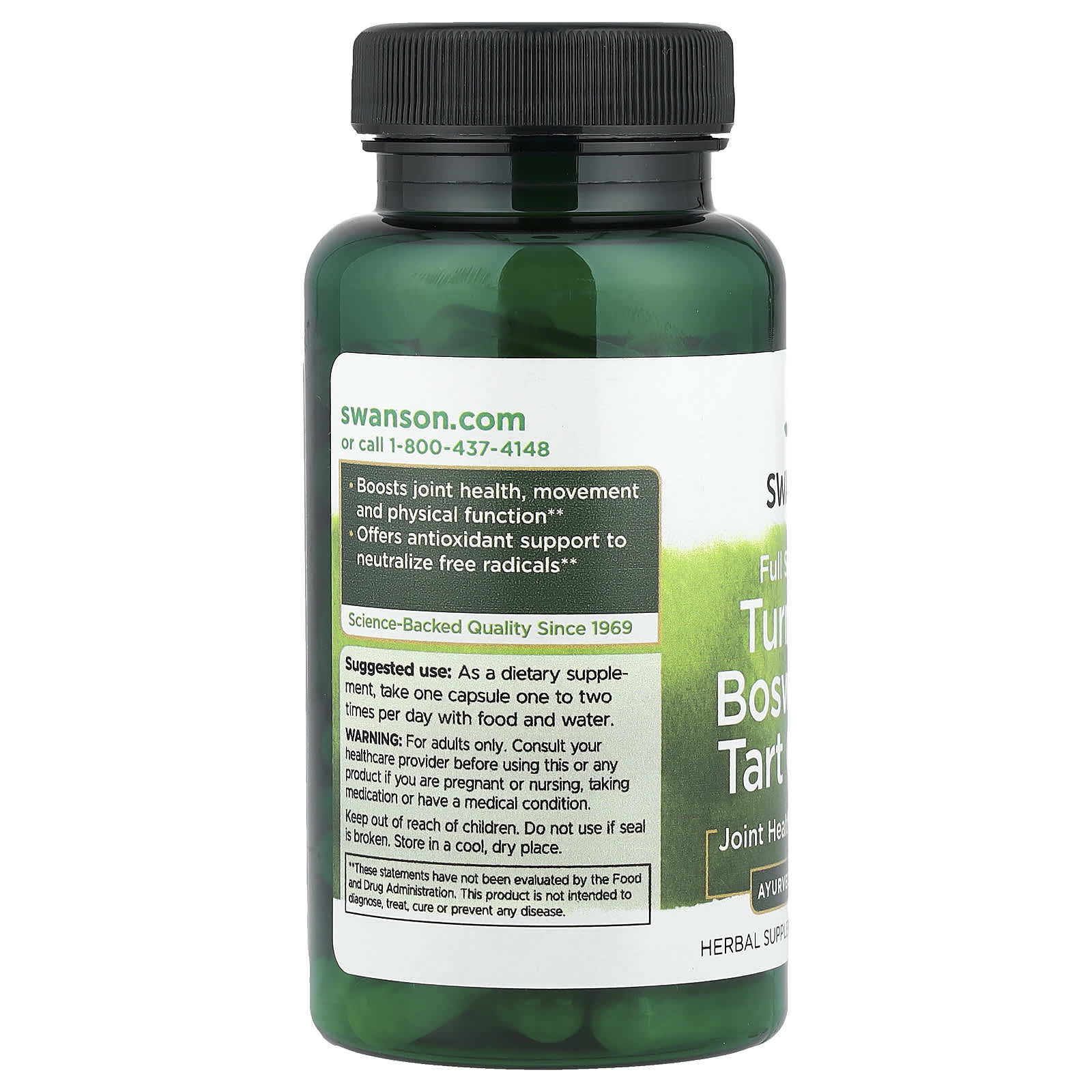 Turmeric, Boswellia & Tart Cherry, Swanson is a dietary supplement created to support joint health, muscle comfort and physiological inflammatory response, through a synergistic combination of recognized botanical extracts: Boswellia serrata (gum resin) 200 mg, Tart Cherry (Prunus cerasus) 200 mg and Turmeric (Curcuma longa) 200 mg. This formula brings together three ingredients traditionally used for joint comfort and mobility, while providing important antioxidant protection for tissues.