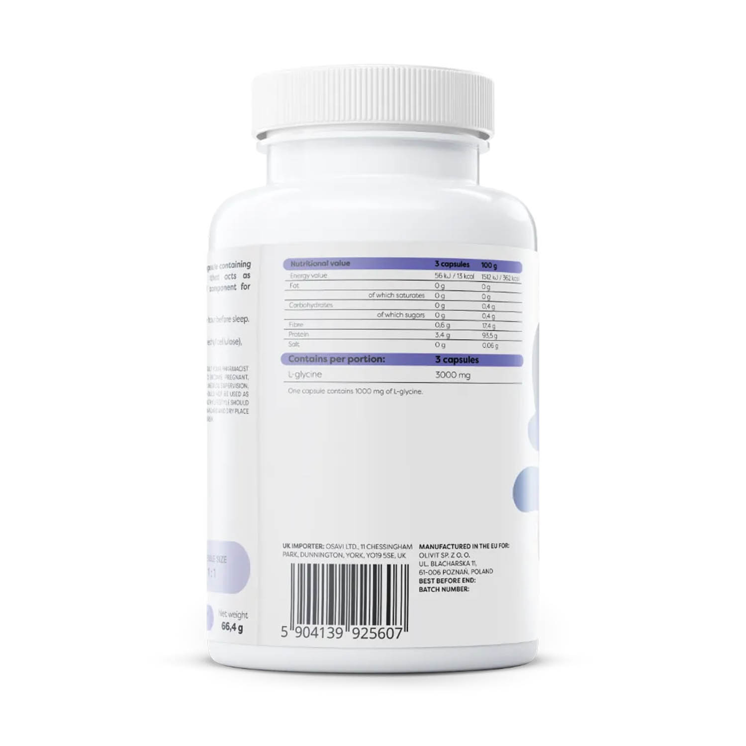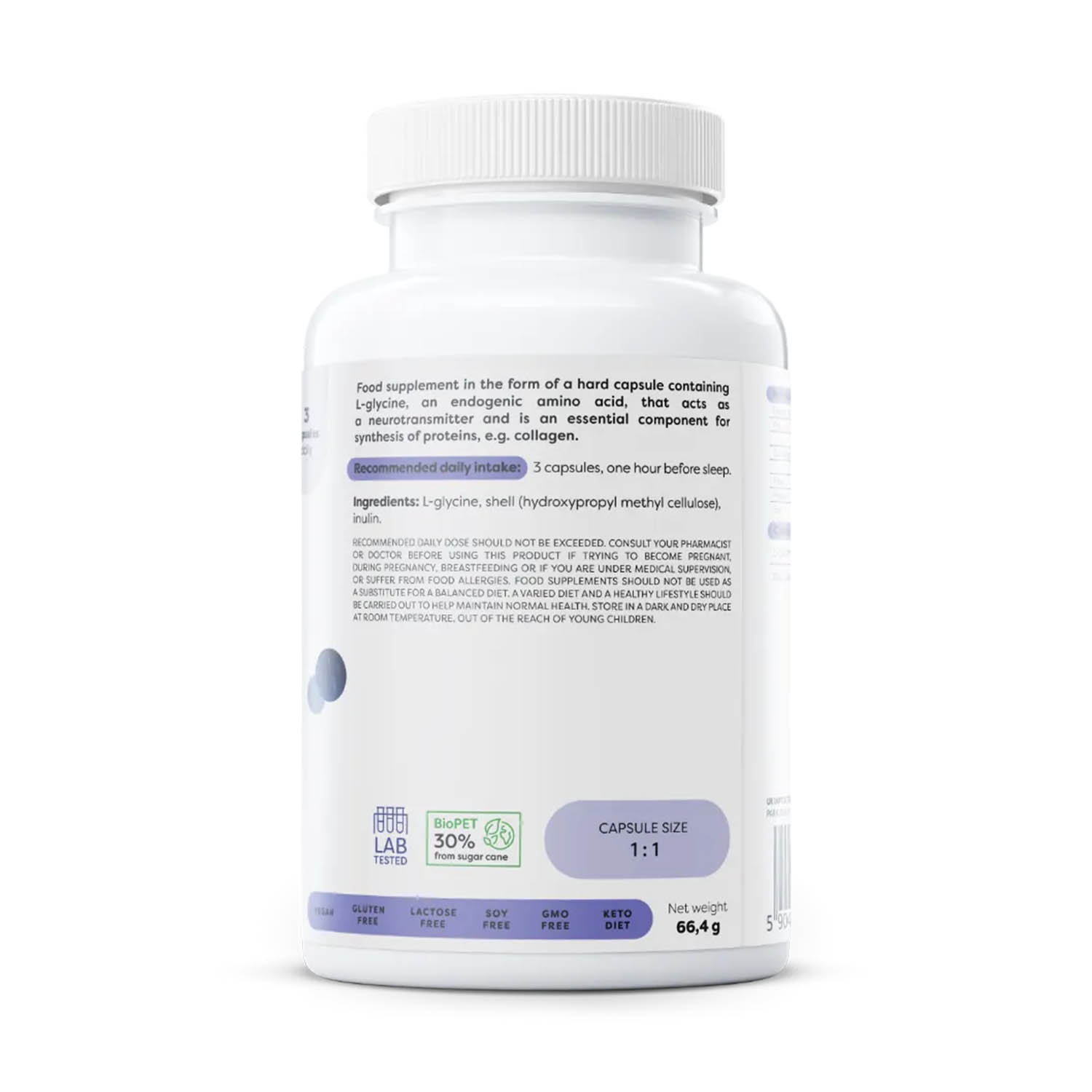 Glycine, 1000 mg, Osavi is a dietary supplement that contains L-glycine, an essential amino acid for a multitude of biological functions. Glycine is a non-essential amino acid, meaning the human body can produce it naturally, but supplementation can bring significant health benefits, especially in the context of increased demands or deficiencies.