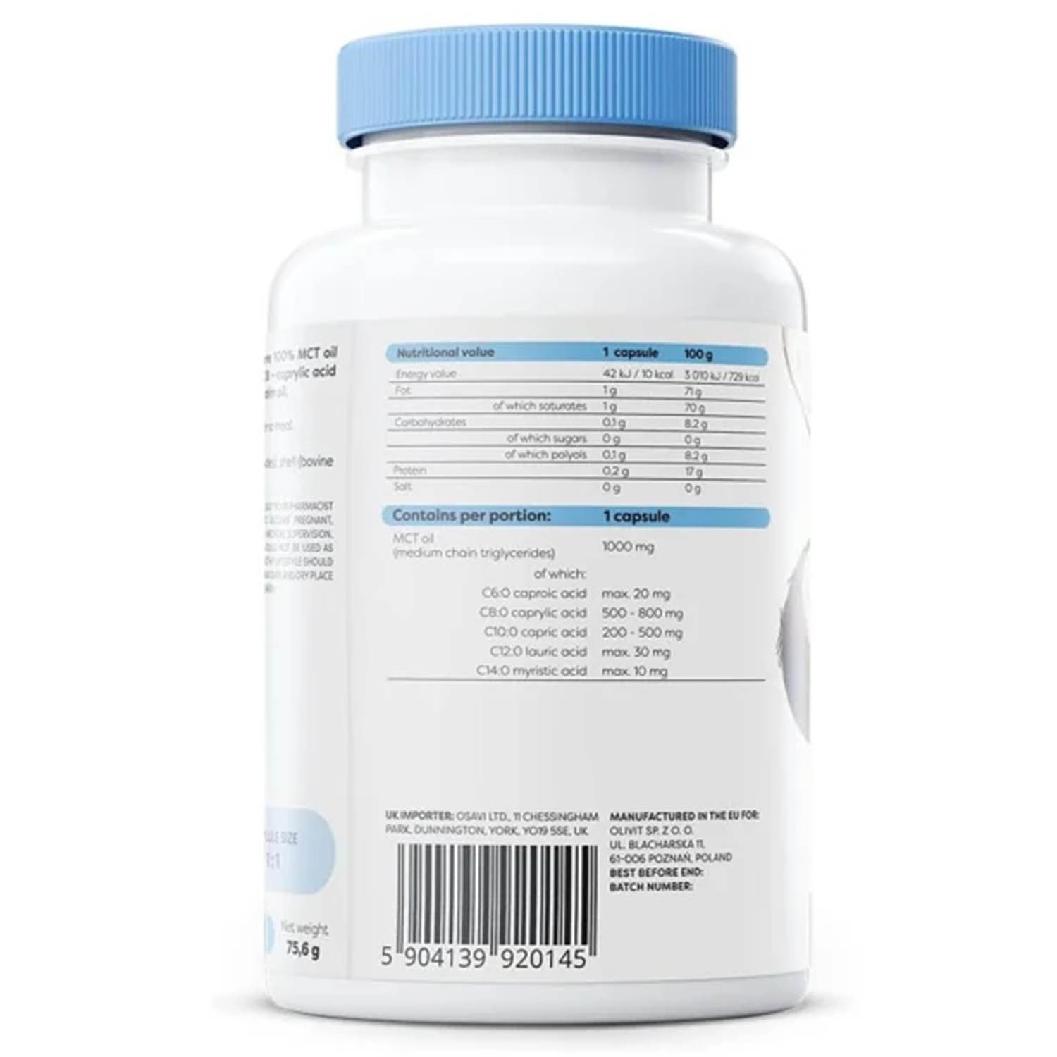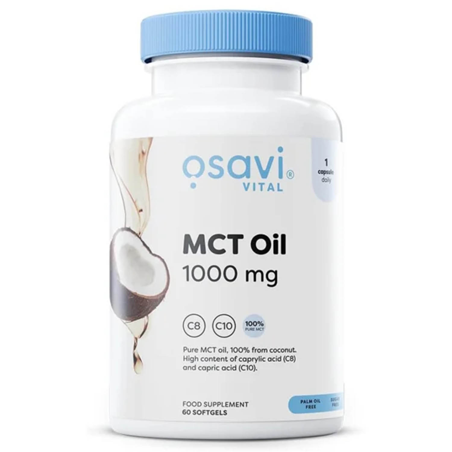 MCT Oil 1000 mg, Osavi is a premium dietary supplement containing medium chain triglycerides (MCT), a special category of fatty acids that are metabolized differently from regular fats. These fats are rapidly absorbed in the body and efficiently converted into energy without requiring complex digestive processes. Due to this mechanism, MCTs represent a fast and stable source of energy for both the body and the brain.