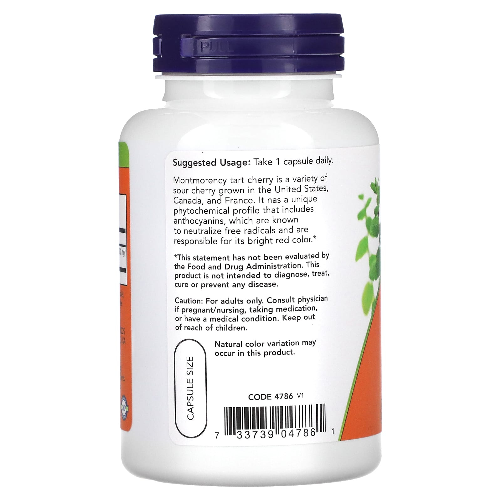 Tart Cherry (Tart Cherry Concentrate) 500 mg, NOW Foods is a dietary supplement based on tart cherry concentrate (Prunus cerasus) (fruit) – 500 mg, appreciated for its rich phytonutrient profile, especially polyphenols and anthocyanins – natural compounds associated with antioxidant protection, supporting inflammatory balance and body recovery after effort. Tart cherries are known for their ability to support joint and muscle comfort, as well as for their connection to relaxation and sleep quality, due to bioactive compounds that influence the body's response to physiological stress.