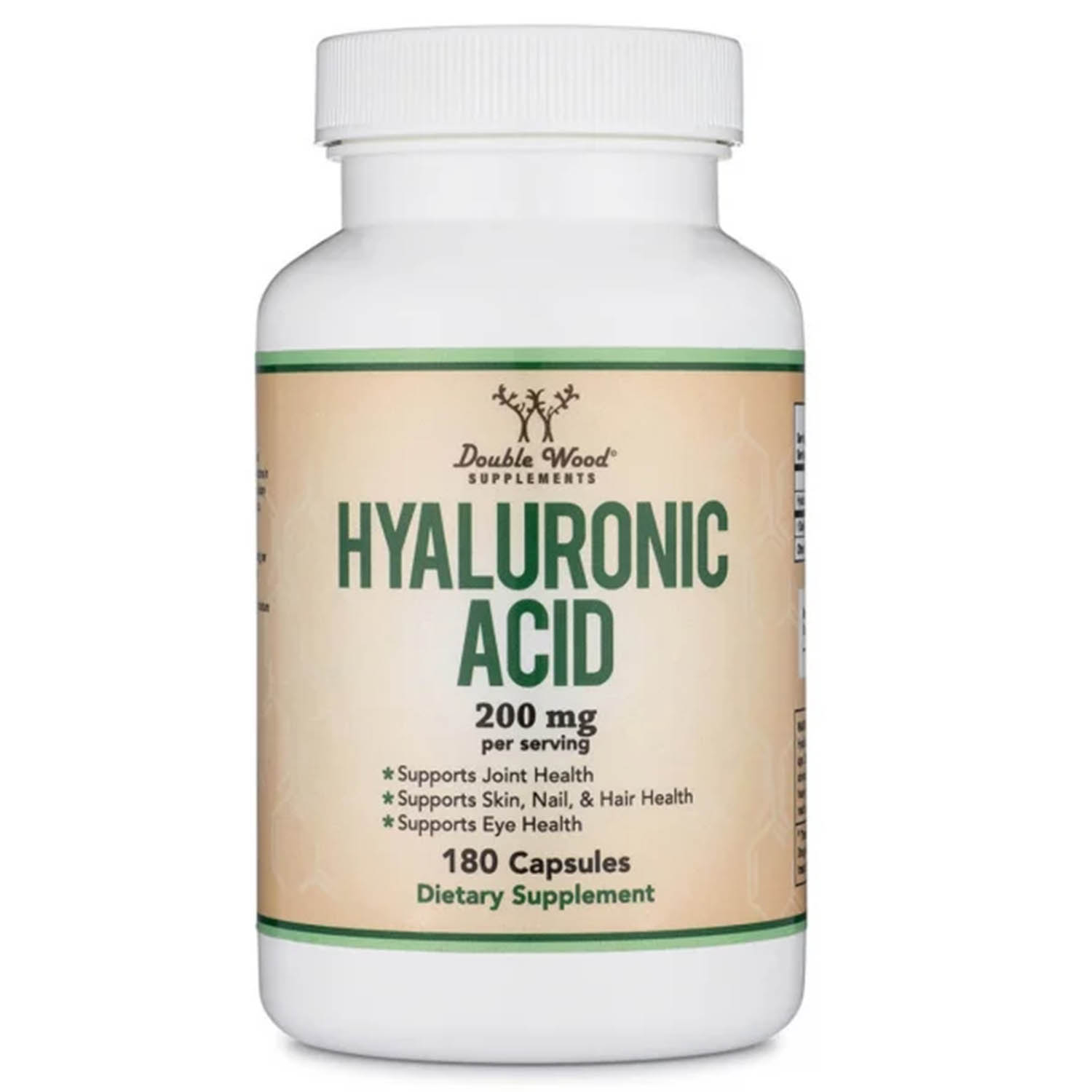 Hyaluronic Acid 100 mg, Double Wood Supplements is a premium dietary supplement containing hyaluronic acid (as sodium hyaluronate), an essential natural substance normally present in human body tissues, especially in skin, eyes and joints. Hyaluronic acid has the unique ability to retain water in very high percentages, functioning as a hydration and lubrication agent for cells and tissues. With age and under the action of environmental factors, hyaluronic acid levels in the body decrease, leading to skin dryness, loss of elasticity, appearance of wrinkles and joint stiffening.