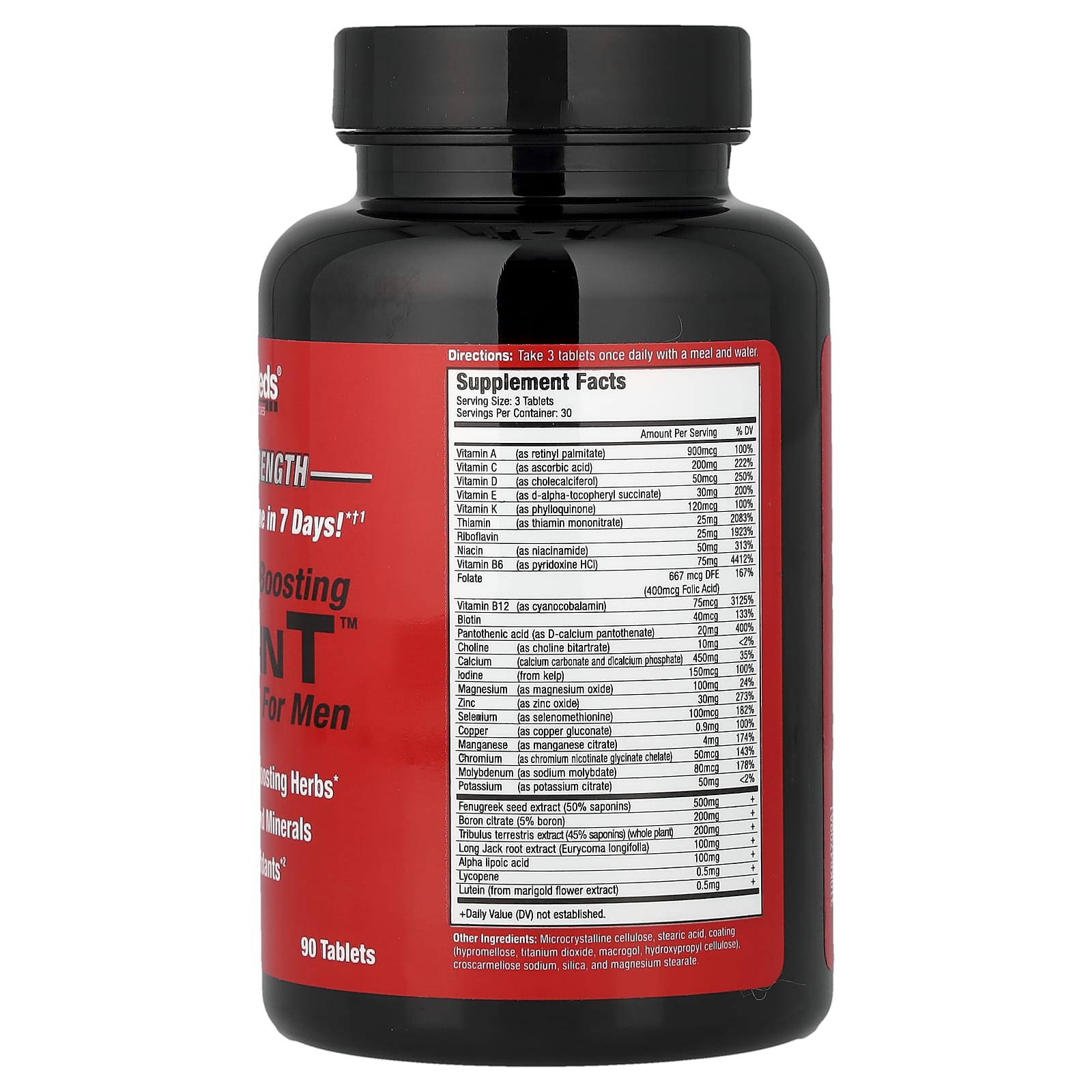 Vitamin T, Testosterone Boosting Multi-Vitamin for Men is an advanced masculine formula that combines a powerful vitamin and mineral complex with established botanical extracts to support daily energy, effort resistance, muscle mass and function, mental clarity and healthy testosterone levels within physiological limits. High potency profile includes vitamins A, C, D, E and K, concentrated B-complex (thiamine, riboflavin, niacin, B6, folate, B12, biotin, pantothenic acid), key minerals (calcium, magnesium, zinc, iodine, selenium, copper, chromium, molybdenum, potassium), plus boron, while phytoactive part is provided by fenugreek, Tribulus terrestris and Longjack (Eurycoma longifolia). For cellular protection and efficient metabolism, alpha-lipoic acid, lycopene and lutein have been integrated. Result: "all-in-one" multivitamin designed for metabolic performance, hormonal balance and vitality.