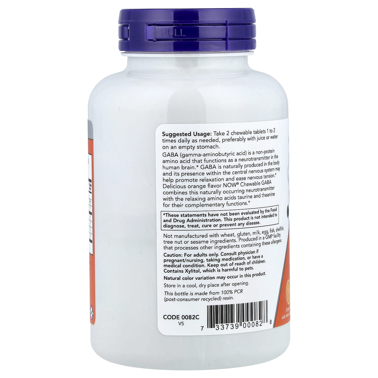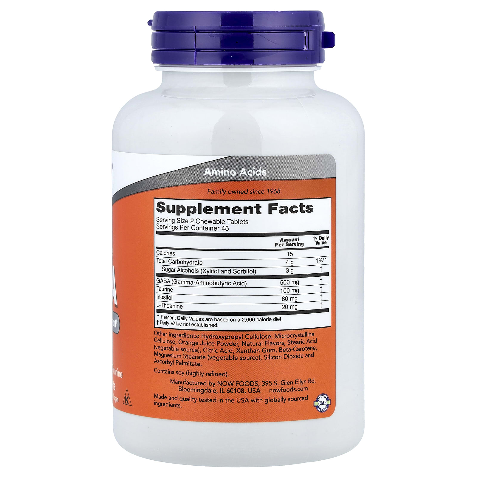 GABA Chewable Plus, Now Foods, combines four active ingredients that act complementarily on the nervous system: