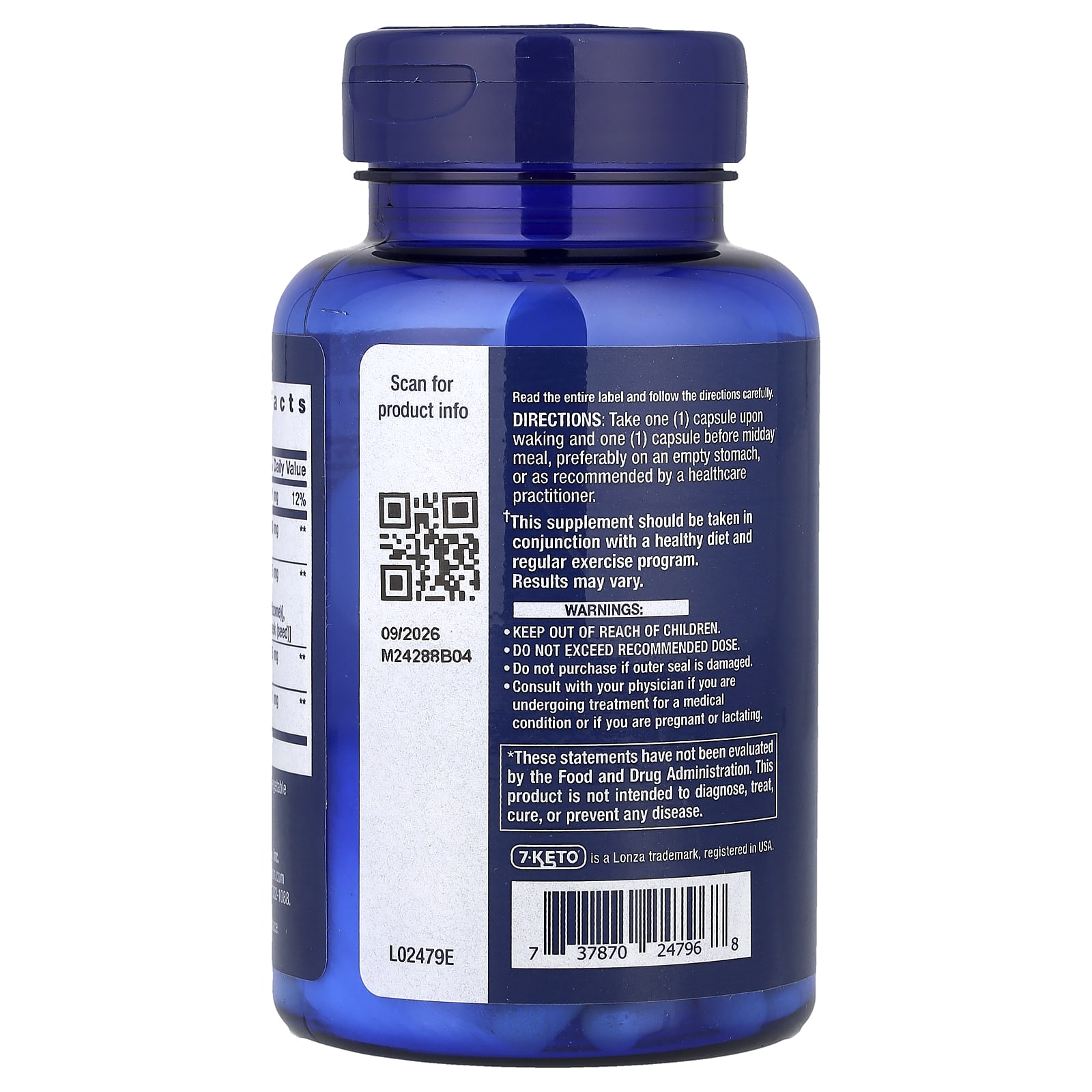 7-Keto DHEA Metabolite 100 mg, Life Extension is an advanced dietary supplement, formulated for supporting energy metabolism, stimulating fat burning and maintaining overall vitality, without influencing hormonal balance. The main ingredient, 7-Keto® DHEA (7-oxo-dehydroepiandrosterone-acetate), is a natural metabolite of DHEA, recognized for its ability to increase metabolic rate and thermogenesis, without converting into estrogen or testosterone.