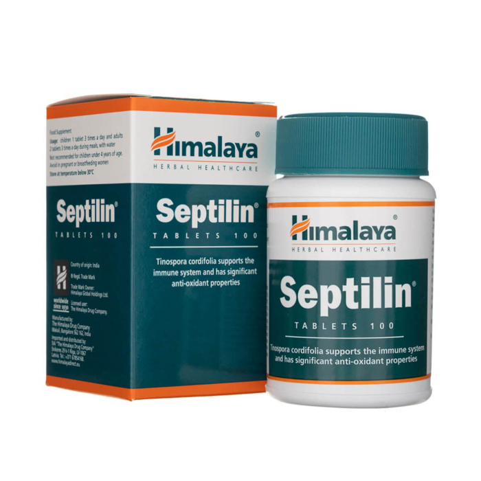 Septilin, Himalaya is a complex ayurvedic formula designed to support immune response, antioxidant protection, and respiratory comfort, while also providing support for skin and tissue integrity. Its intelligent blend of botanical extracts and traditional minerals works synergistically to support the body’s natural defense mechanisms and maintain an appropriate inflammatory balance. Each serving includes carefully selected ingredients: Balsamodendron mukul (purified) 162 mg, Conch Shell Calx 32 mg, Maharasnadi quath 65 mg, Tinospora cordifolia 49 mg, Rubia cordifolia 32 mg, Emblica officinalis 16 mg, Moringa pterygosperma 16 mg, and Glycyrrhiza glabra 6 mg – a combination with tradition in supporting immunity and overall vitality.