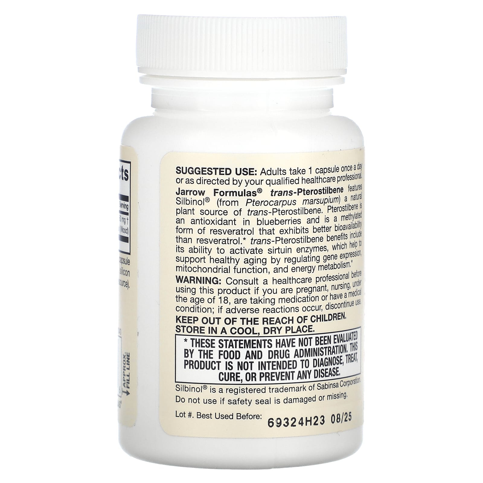 Through its stilbene profile with superior bioavailability, Trans-Pterostilbene, 50 mg, Jarrow delivers solid support for antioxidant protection, metabolic balance, cognitive clarity and mechanisms associated with cellular longevity – an intelligent choice for current life pace.