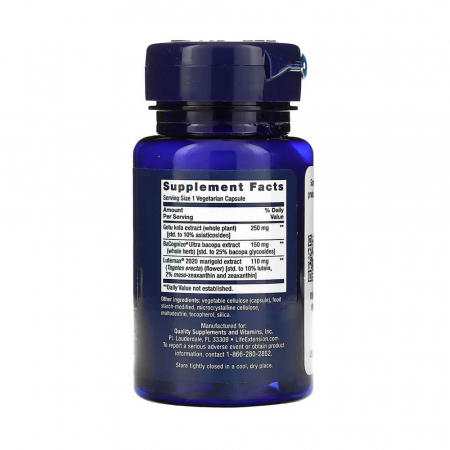 Quick Brain Nootropic, Life Extension, is a dietary supplement, meticulously formulated with potent botanical ingredients such as Gotu Kola, BaCognize® Ultra bacopa, and Lutemax® 2020 marigold. This blend is designed to optimize brain function, enhance memory, improve focus, and mental clarity, thereby contributing to a dynamic and balanced lifestyle.