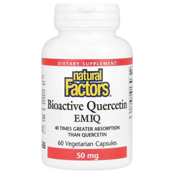 Bioactive Quercetin EMIQ, Natural Factors is a cutting-edge dietary supplement that provides 50 mg of EMIQ® (Enzymatically Modified Isoquercitrin), an ultra-absorbable form of quercetin with superior bioavailability. EMIQ® is the result of a patented enzymatic process that transforms natural quercetin into a much more soluble and effective variant in the body. Clinical studies have shown that EMIQ® is up to 40 times more bioavailable than standard quercetin, making it one of the most powerful forms of quercetin available on the market.