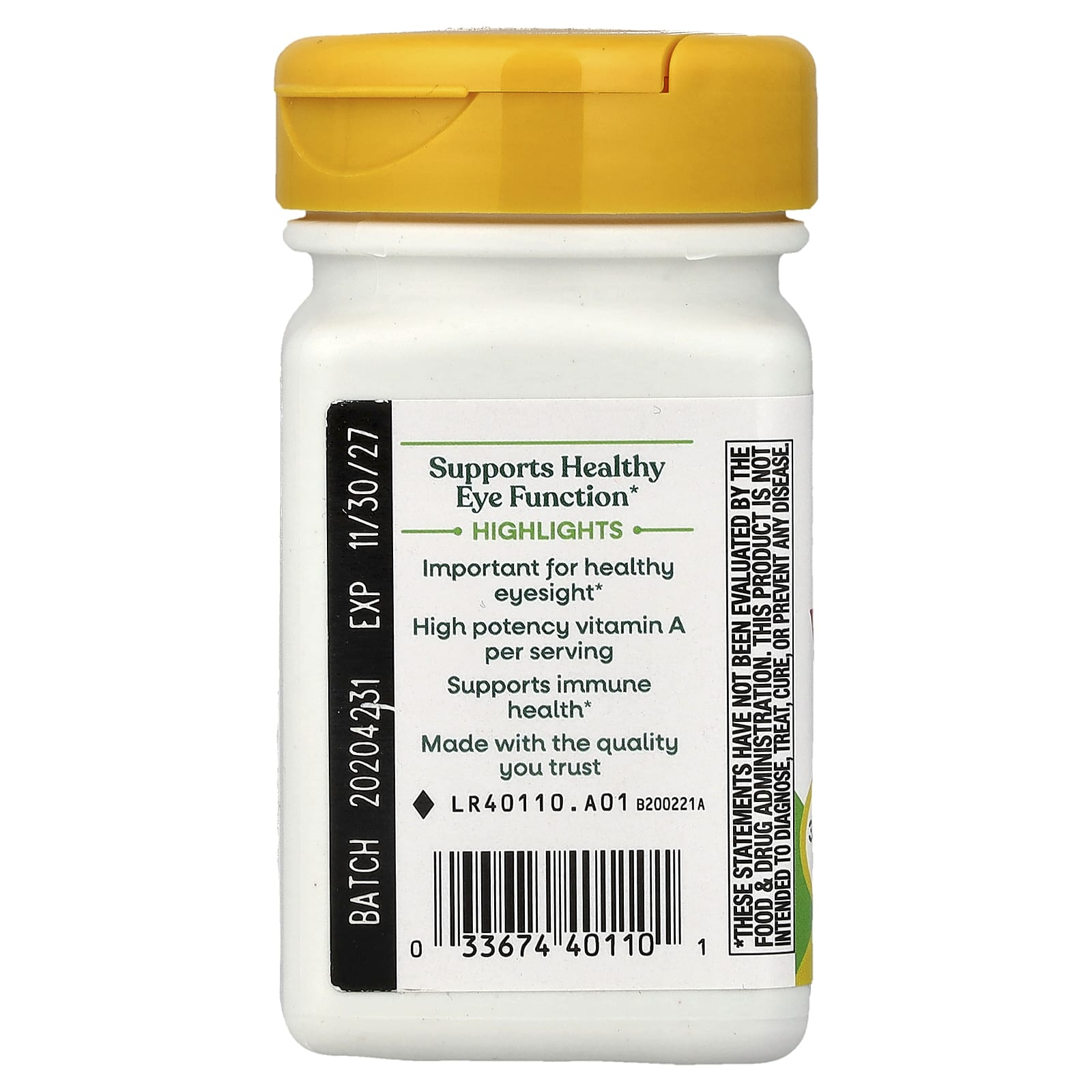 Vitamin A 3000 mcg, Nature's Way is a concentrated dietary supplement that provides vitamin A from sources well known for bioavailability: fish liver oil and retinyl palmitate. Vitamin A is an essential nutrient with multiple roles in the body, involved in maintaining normal vision, immune system function, skin and mucous membrane integrity, as well as in cell differentiation processes. In biological terms, vitamin A is a "regulator" of tissues: it influences how cells mature, renew and maintain their functional structure.