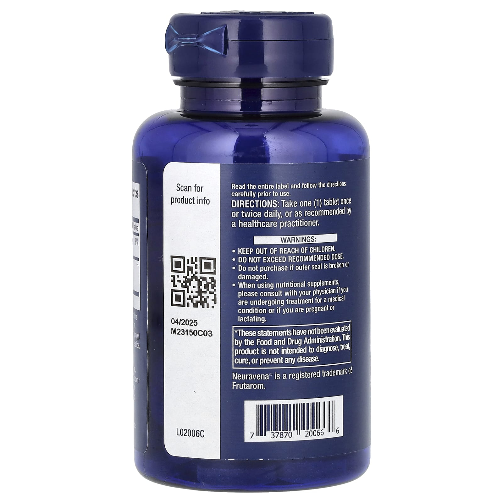 Robust dose of 800 mg Neuravena® per serving ensures lot-to-lot consistency, with bioactive profile tracked for isovitexin and other specific polyphenols. Life Extension relies on quality control and raw material traceability.