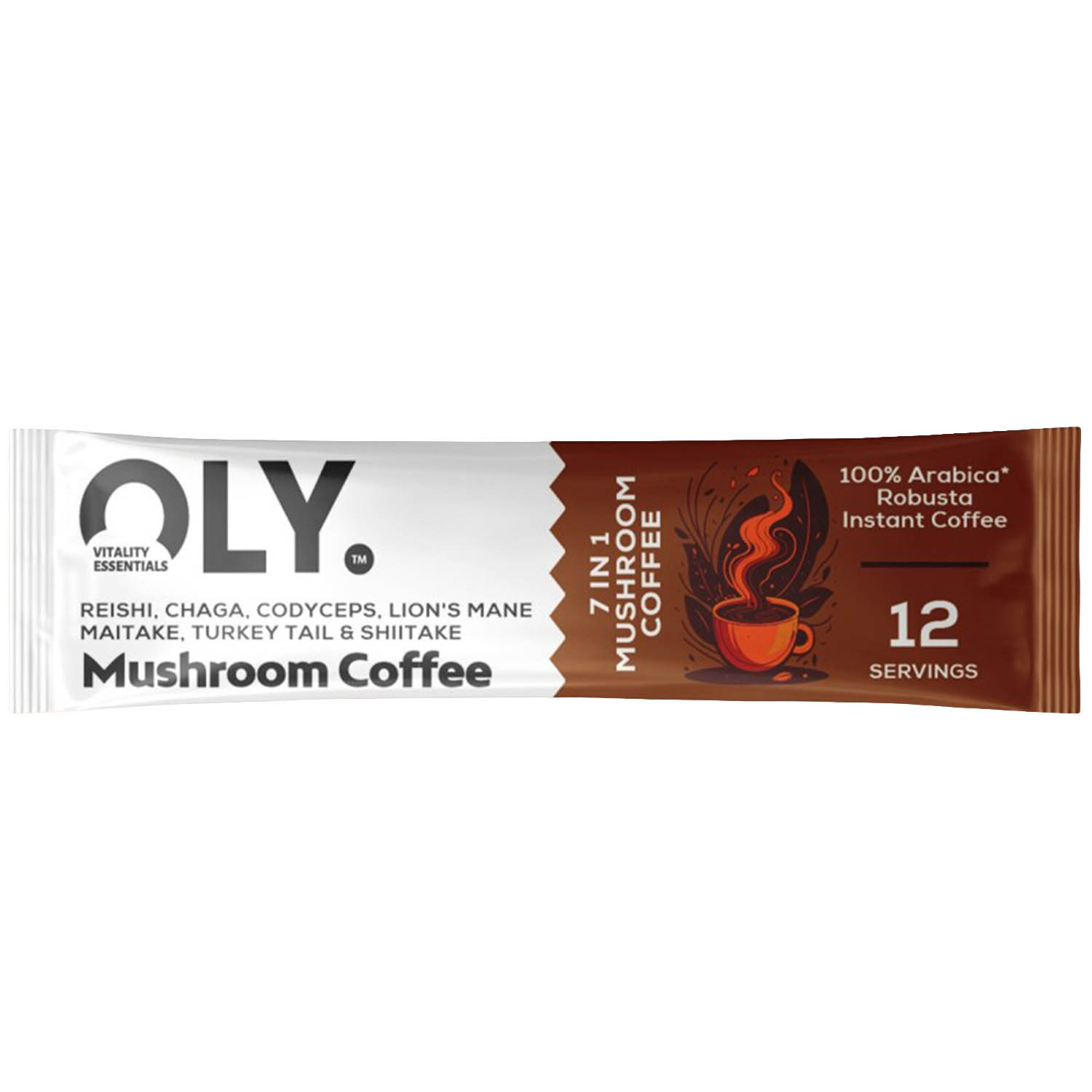 Mushroom Coffee (7 in 1), OLY is a premium functional formula that combines coffee with an advanced complex of seven carefully selected medicinal mushrooms: Reishi, Chaga, Cordyceps, Lion's Mane, Maitake, Turkey Tail and Shiitake. This unique combination offers not only a balanced energy boost, but also deep support for cognitive function, immune system, stress resistance, metabolic health and general vitality. Each serving provides 6 g of mushroom complex, transforming coffee into a true adaptogenic elixir for the body.