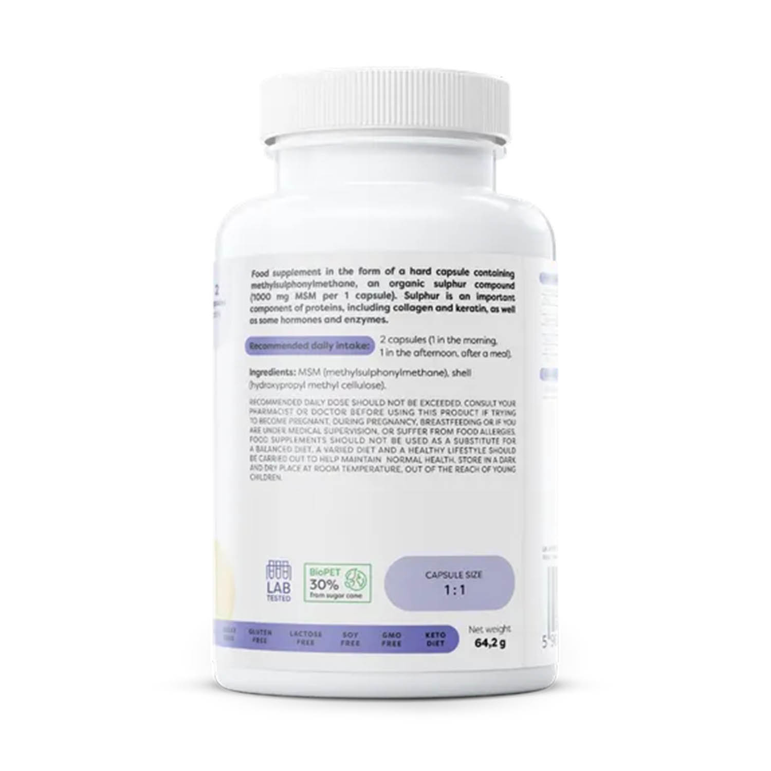 | MSM (methylsulphonylmethane) | 2000 mg | — |