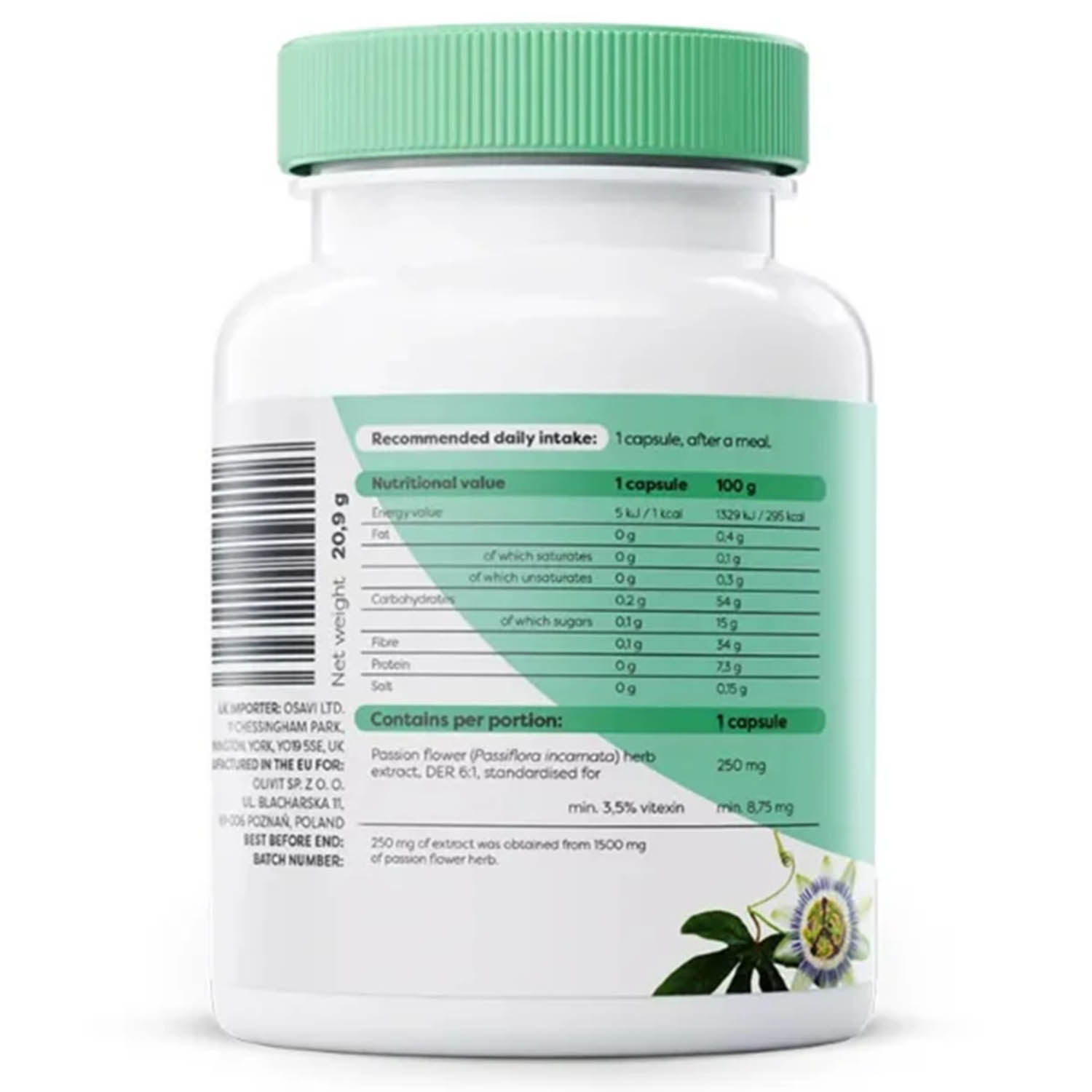 Passiflora, 250 mg, Osavi is a dietary supplement containing passionflower extract (Passiflora incarnata). Passionflower is obtained by extracting the active principles from the Passiflora incarnata plant, known for its calming properties and benefits for mental and physical health.