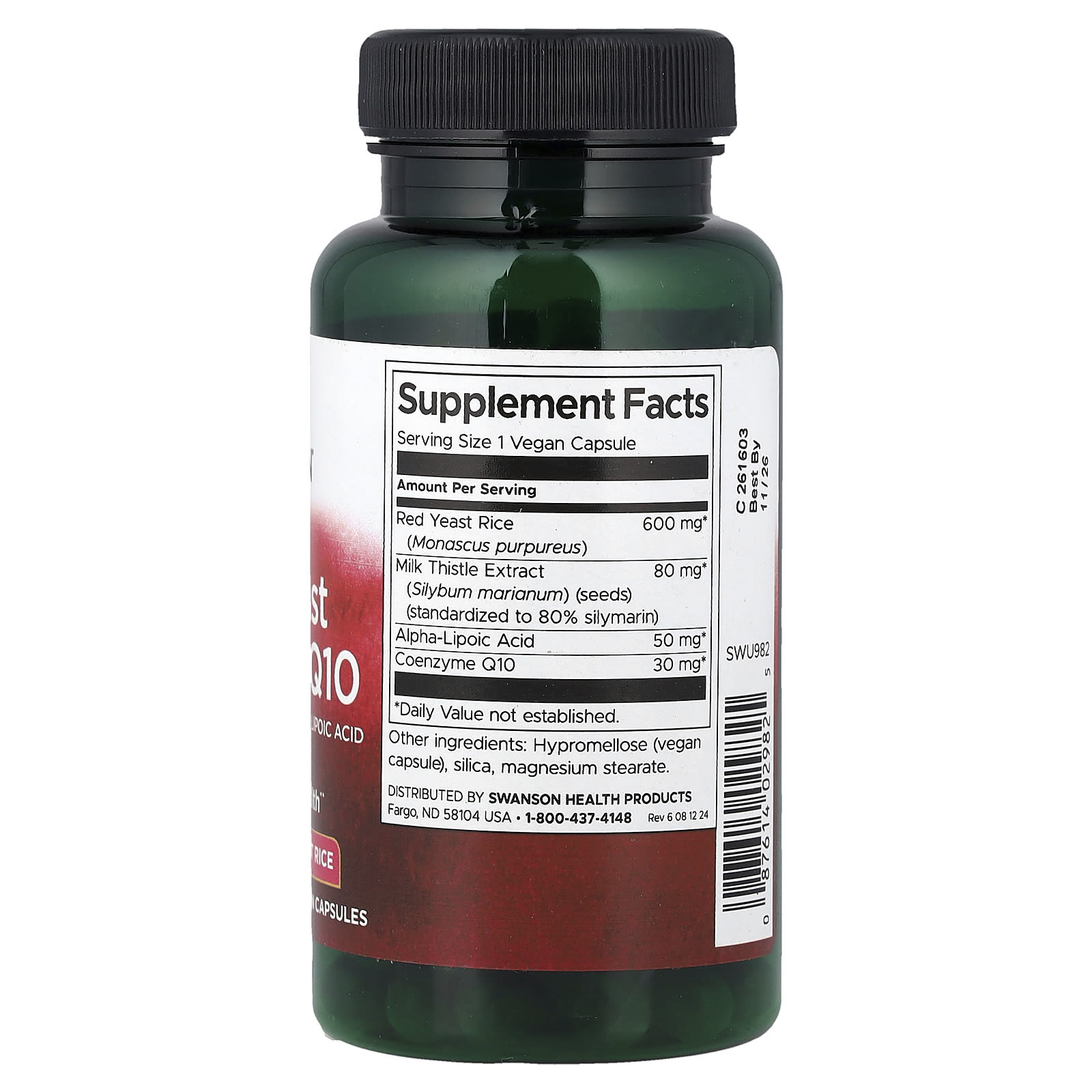 Red Yeast Rice & CoQ10 with Milk Thistle and Alpha Lipoic Acid, Swanson is a complex dietary supplement, formulated to support cardiovascular health, lipid metabolism balance, and antioxidant protection, through a carefully selected combination of ingredients with complementary action. The formula contains Red yeast rice (Monascus purpureus) 600 mg, Milk thistle extract (Silybum marianum) 80 mg (standardized to 80% silymarin), Alpha lipoic acid 50 mg and Coenzyme Q10 30 mg – a blend aimed at maintaining a healthy lipid profile, supporting liver function, and protecting cells against oxidative stress.