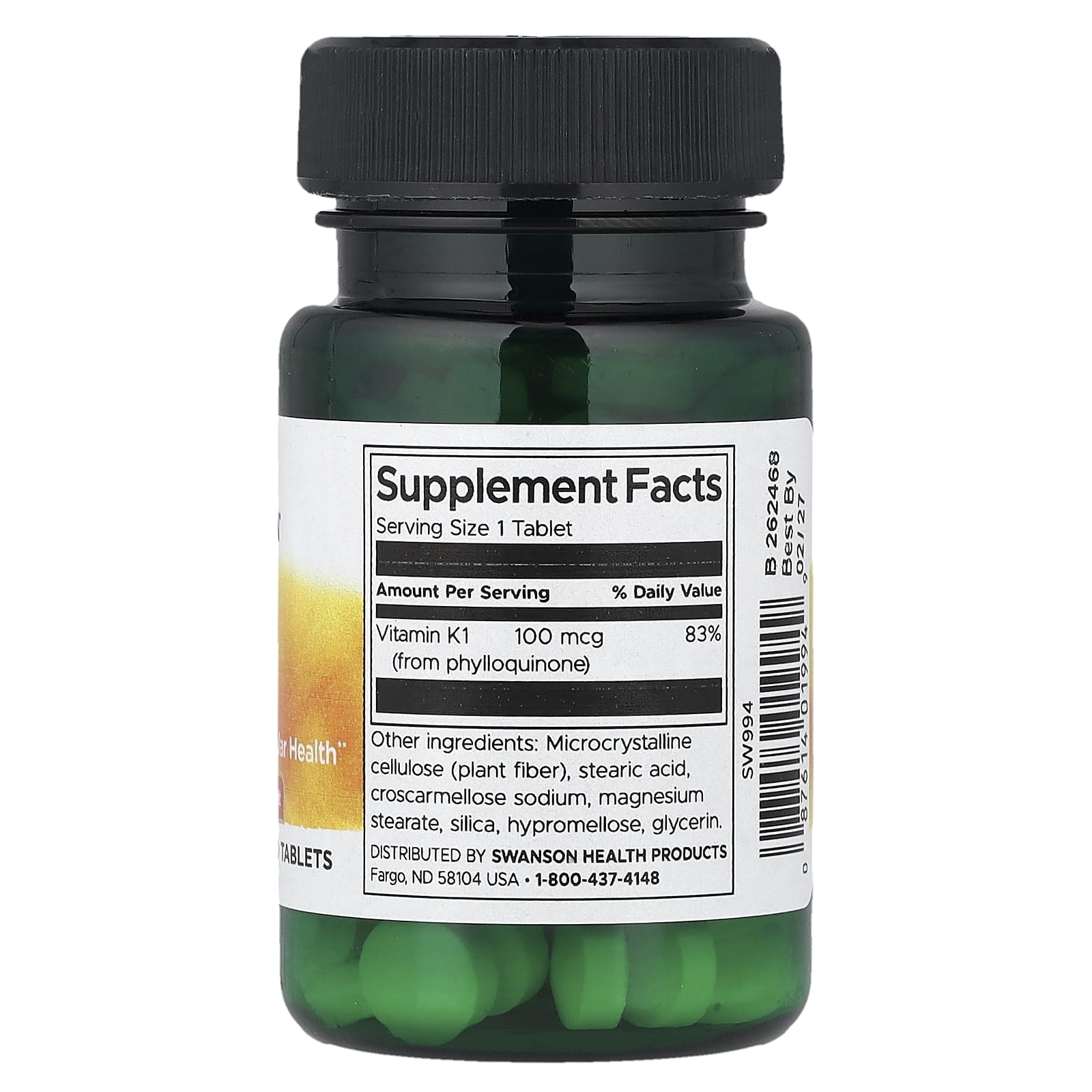 Vitamin K-1 (Phylloquinone) 100 mcg, Swanson, offers essential support for healthy coagulation, strong bones and vascular comfort, through precise activation of K-dependent proteins and harmonization of calcium "economy" in body. Through clear dosage and classic nutritional form, formula naturally integrates into daily routine, alongside habits that support mobility, density and daily vitality.