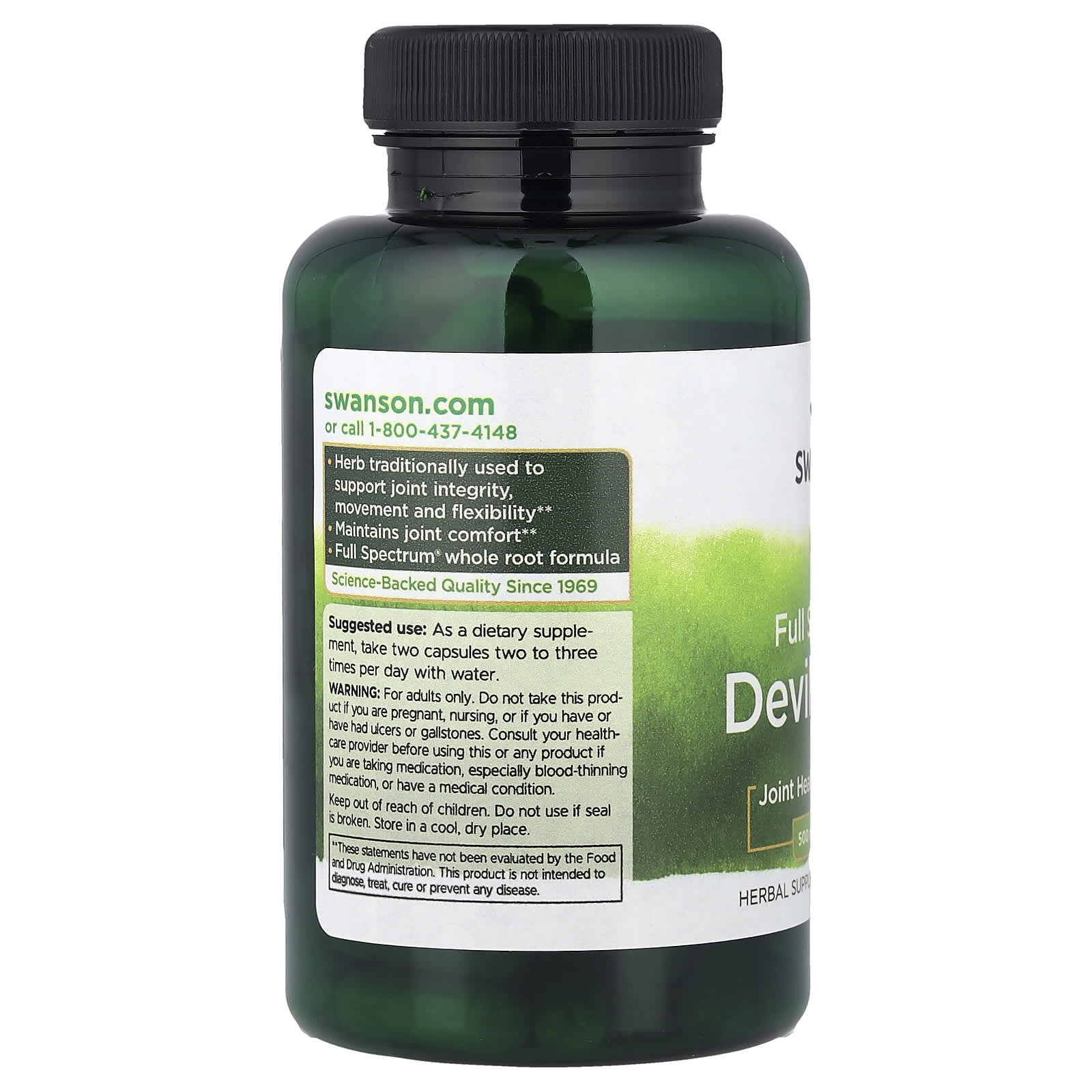 Swanson keeps the formulation clean and easy to understand: Devil’s Claw (root) 1 g*** per serving. No opaque blends, no vague promises.