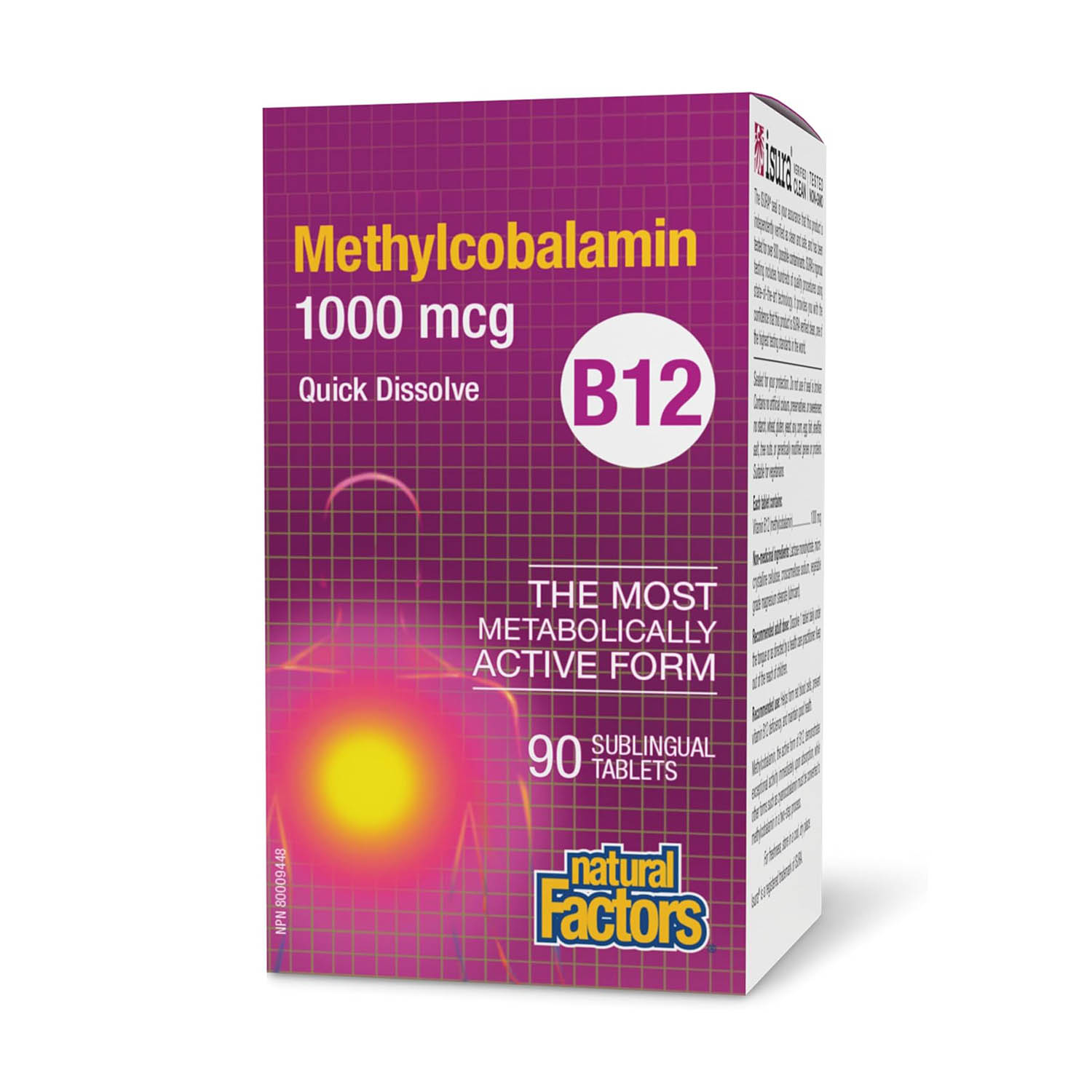 B12, Methylcobalamin, 5,000 mcg, from Natural Factors, is a premium dietary supplement formulated to provide a concentrated dose of vitamin B12 in its biologically active form – methylcobalamin. This form is directly usable by the body, without requiring hepatic conversion, ensuring superior absorption and efficiency. Vitamin B12 is an essential nutrient involved in numerous vital processes, including DNA synthesis, cellular energy production, red blood cell formation, nervous system function and brain health.