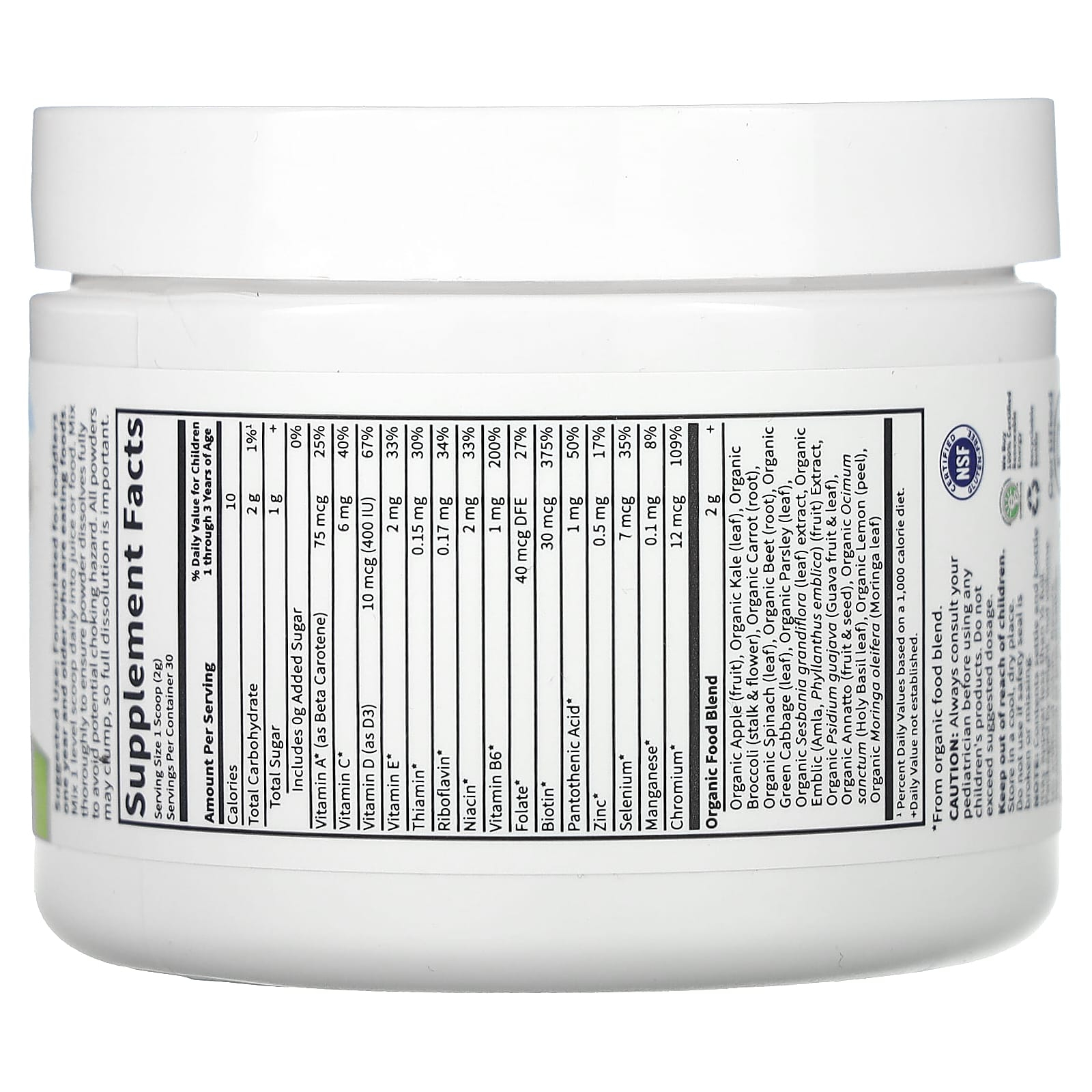 Kids Multivitamin Powder (Kids & Babies 1+ Year), Garden of Life is a dietary supplement in powder form, designed to support the daily need for micronutrients during key periods of growth and development, starting from 1 year of age. The formula combines a balanced profile of essential vitamins and minerals with a carefully selected organic food blend, offering a gentle and complete approach to young children’s health. At this stage, the body undergoes rapid changes: the immune system is maturing, metabolism adjusts to an increasingly active lifestyle, and neurological and bone development is intense. That is why a proper intake of micronutrients can make a difference in supporting the body’s basic functions.