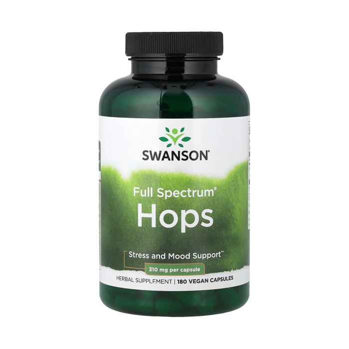 Full Spectrum Hops 310 mg, Swanson is a premium dietary supplement formulated from hops flowers (Hops Flower – Humulus lupulus), a plant with a long tradition in European phytotherapy, valued for its effects in supporting relaxation, sleep and nervous system balance. Hops flowers contain a complex profile of bioactive compounds – including bitter acids (humulone and lupulone), flavonoids, volatile oils and phytonutrients with antioxidant action – which act synergistically on the nervous system, stress response and general body comfort.