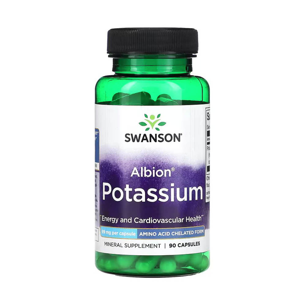 Albion Potassium Glycinate, 99 mg, Swanson is a high-quality dietary supplement designed to provide an efficient and easily absorbable form of potassium. Potassium is an essential mineral for human health, playing a role in numerous physiological processes. This supplement contains potassium derived from the Albion® amino acid complex, ensuring optimal bioavailability and absorption.