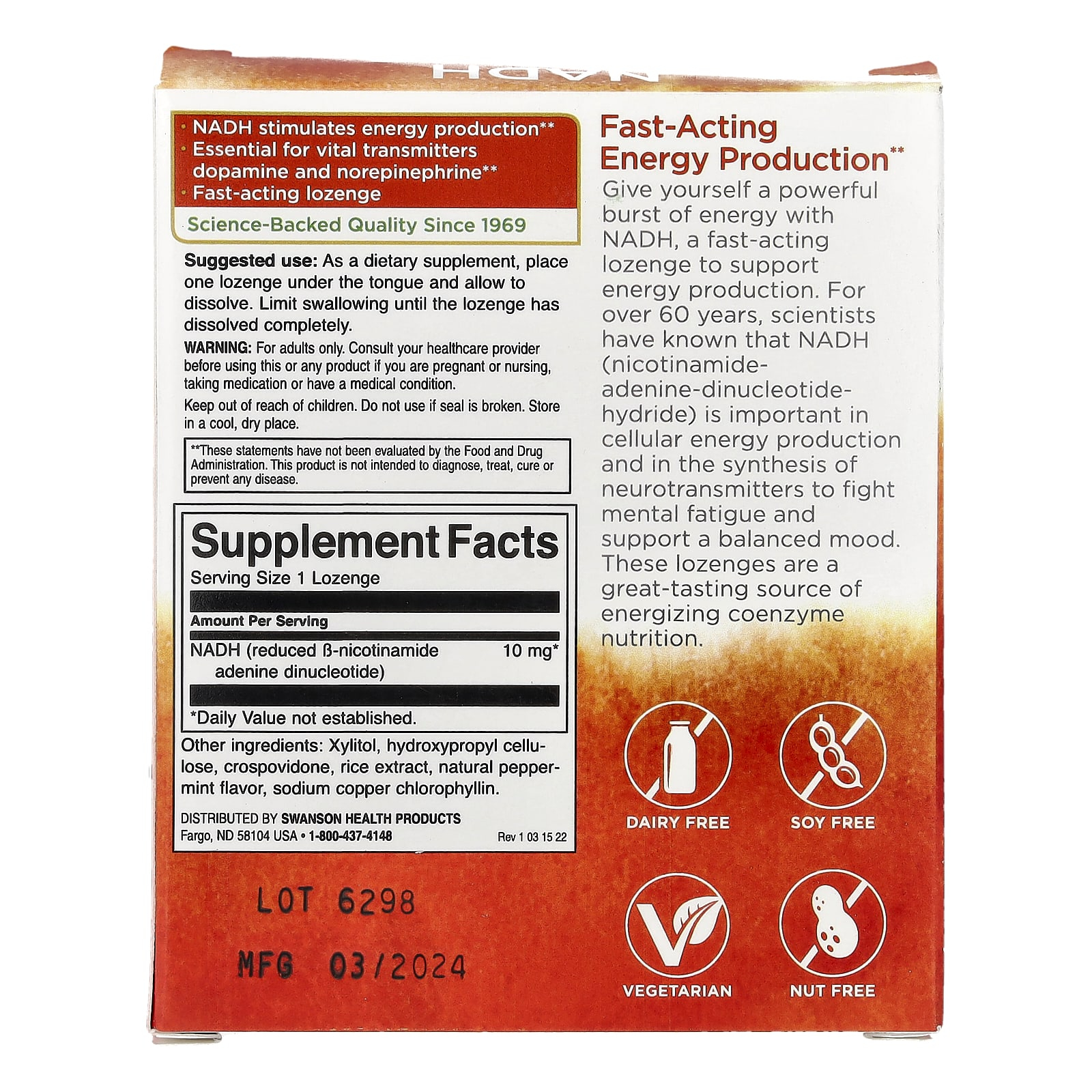 NADH (Coenzyme B3), 10 mg, Swanson thus offers concentrated support for mitochondrial energy, mental clarity and fatigue reduction, acting at the level of fundamental mechanisms that fuel every cell in the body.
