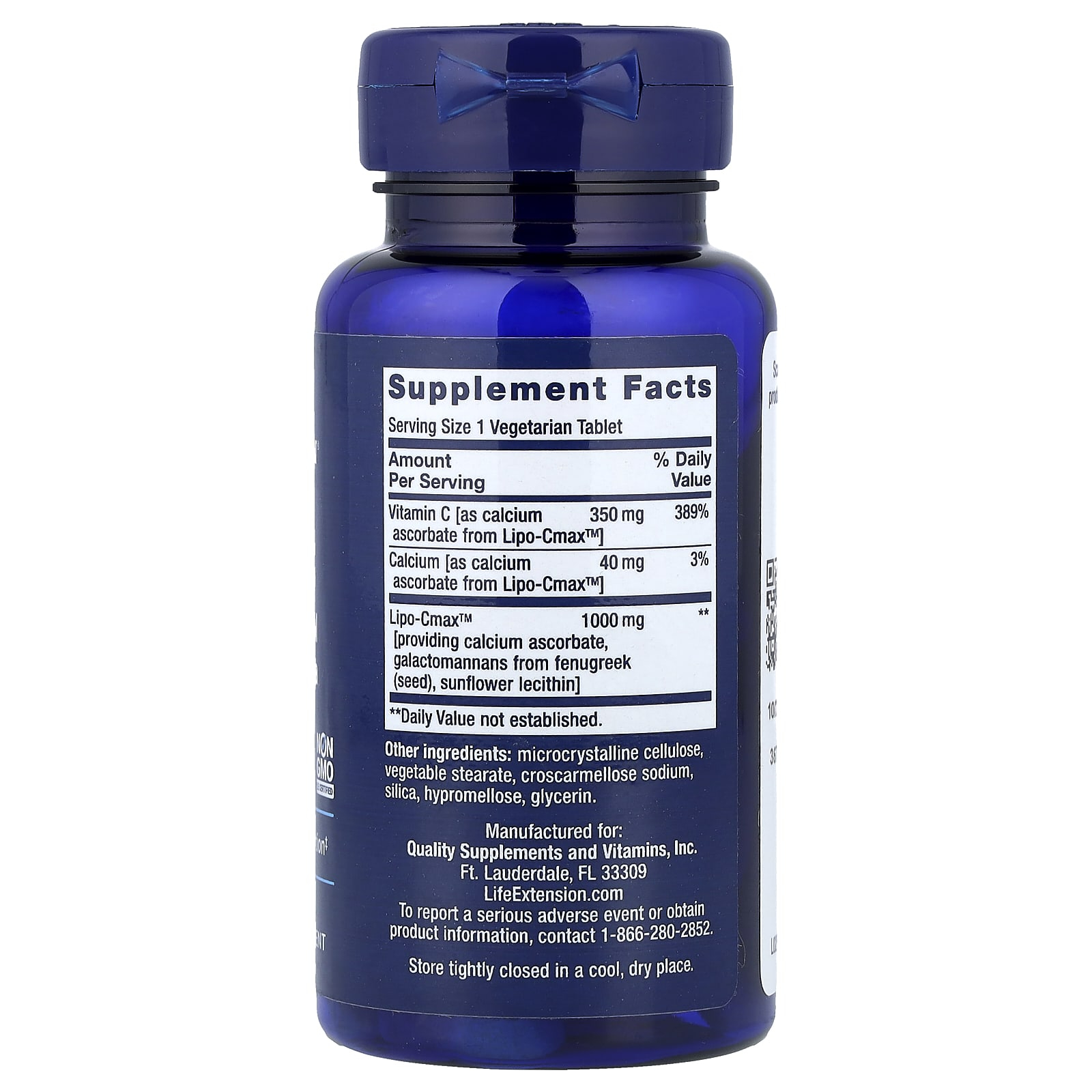 Vitamin C Liposomal, 1000 mg, Life Extension is a premium dietary supplement formulated to support the body through one of the most important molecules for protection and regeneration: vitamin C. The product uses an advanced delivery system, Lipo-Cmax™, which provides vitamin C in the form of calcium ascorbate and includes specially selected components to support ingredient stability and absorption. The formula offers Vitamin C – 350 mg (389% DV) and Calcium – 40 mg (3% DV), derived from calcium ascorbate, alongside Lipo-Cmax™ 1000 mg (complex providing calcium ascorbate, galactomannans from fenugreek and sunflower lecithin).