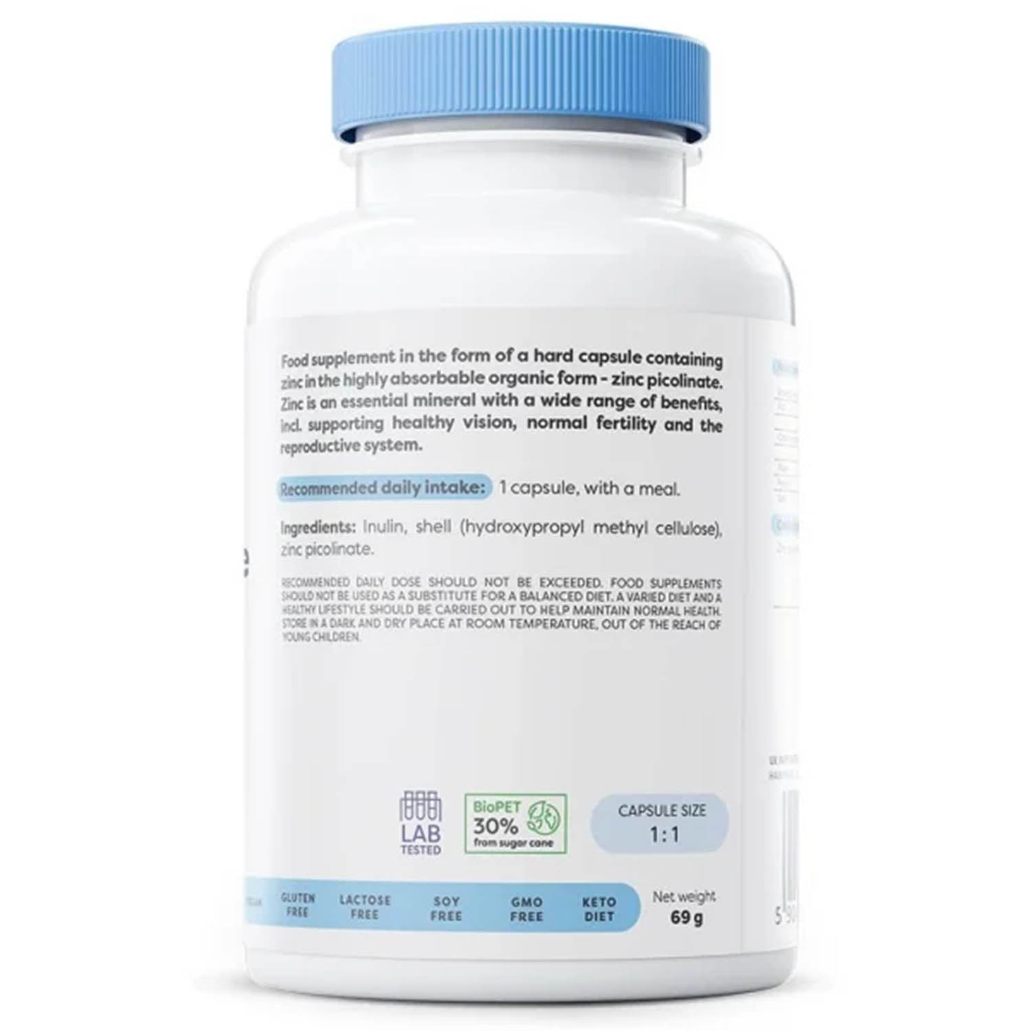 Zinc Picolinate, 50 mg, Osavi is a dietary supplement containing zinc picolinate, an easily absorbable form of this essential mineral that plays a crucial role in numerous biological processes. Zinc is one of the vital micronutrients for the body, involved in supporting the immune system, proper metabolic function, maintaining skin health, and supporting reproductive health.