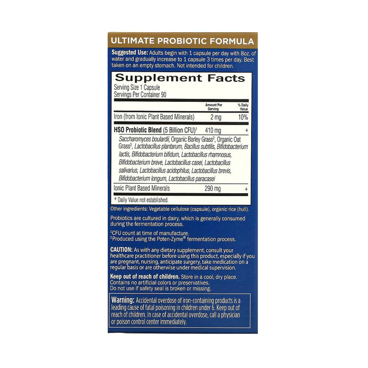 Primal Defense® Ultra, Garden of Life este un supliment premium creat pentru a reconstrui în mod inteligent ecosistemul intestinal. Fiecare porție furnizează un Amestec de Probiotice HSO cu 5 miliarde CFU și un complex de minerale ionice pe bază de plante, alături de 2 mg fier (10%) pentru susținere nutrițională zilnică. Formula reunește tulpini consacrate de Lactobacillus și Bifidobacterium – precum L. plantarum, L. rhamnosus, L. casei, L. salivarius, L. acidophilus, L. brevis, L. paracasei, B. lactis, B. bifidum, B. breve, B. longum – împreună cu Bacillus subtilis și Saccharomyces boulardii, plus iarbă organică de orz și iarbă organică de ovăz ca sprijin prebiotic. Formula este foarte eficientă.