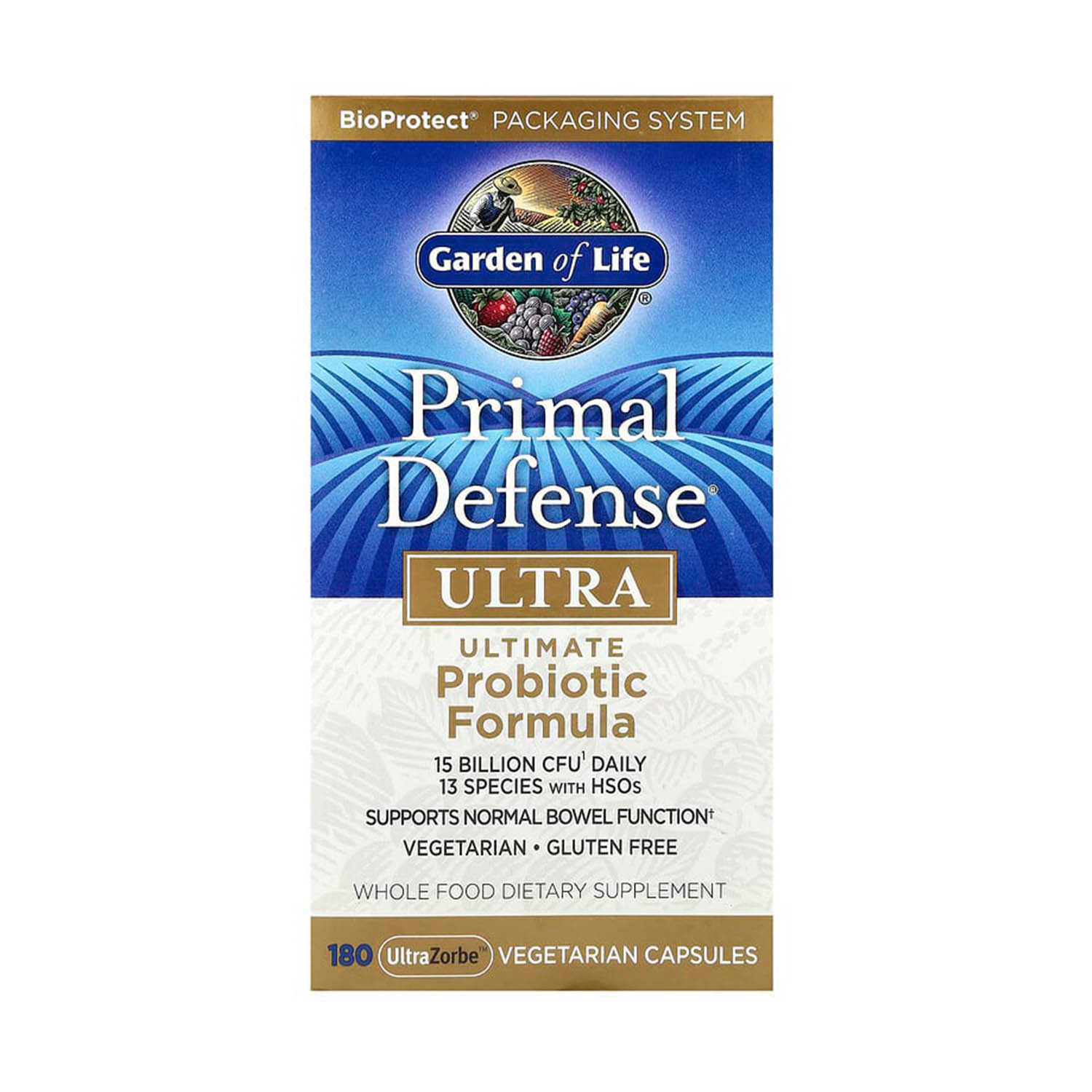 Primal Defense® Ultra, Garden of Life este un supliment premium creat pentru a reconstrui în mod inteligent ecosistemul intestinal. Fiecare porție furnizează un Amestec de Probiotice HSO cu 5 miliarde CFU și un complex de minerale ionice pe bază de plante, alături de 2 mg fier (10%) pentru susținere nutrițională zilnică. Formula reunește tulpini consacrate de Lactobacillus și Bifidobacterium – precum L. plantarum, L. rhamnosus, L. casei, L. salivarius, L. acidophilus, L. brevis, L. paracasei, B. lactis, B. bifidum, B. breve, B. longum – împreună cu Bacillus subtilis și Saccharomyces boulardii, plus iarbă organică de orz și iarbă organică de ovăz ca sprijin prebiotic. Formula este foarte eficientă.