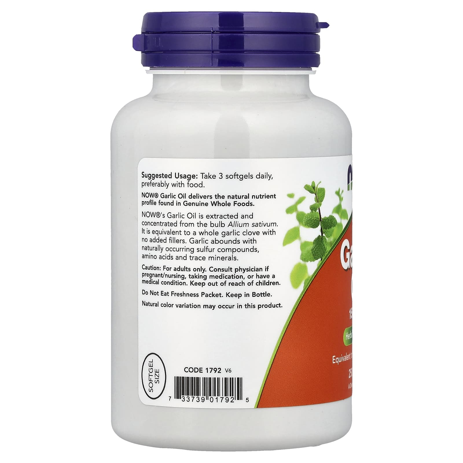 Garlic Oil 1500 mg, NOW Foods este un supliment concentrat pe bază de ulei de usturoi (Allium sativum) din bulb, formulat pentru a livra beneficiile tradiționale ale usturoiului într-o formă modernă, ușor de utilizat și fără mirosul înțepător al cățeilor cruzi. Fiecare porție conține Ulei concentrat de usturoi – 9 mg, echivalent cu 4.500 mg de usturoi întreg, oferind un profil bogat de compuși organo-sulfurați (precum dialil disulfid, dialil trisulfid și S-alil-cisteină) care susțin echilibrul cardiovascular, răspunsul antioxidant și confortul digestiv. NOW Foods pune accent pe puritate și consistență, astfel încât fiecare capsulă moale să fie o sursă previzibilă de nutrienți activi, ușor de încadrat în rutina ta zilnică.