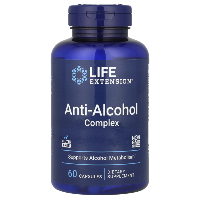 Anti-Alcohol Complex, Life Extension oferă un profil complex și avansat pentru protecție hepatică, susținerea glutationului și apărare antioxidantă intensă, combinând nutrienți esențiali (C, E, B1, zinc, seleniu) cu NAC, benfotiamină și un complex HepatoProtection bogat în polifenoli și extracte standardizate, pentru susținerea echilibrului metabolic și a detoxifierii naturale a organismului.