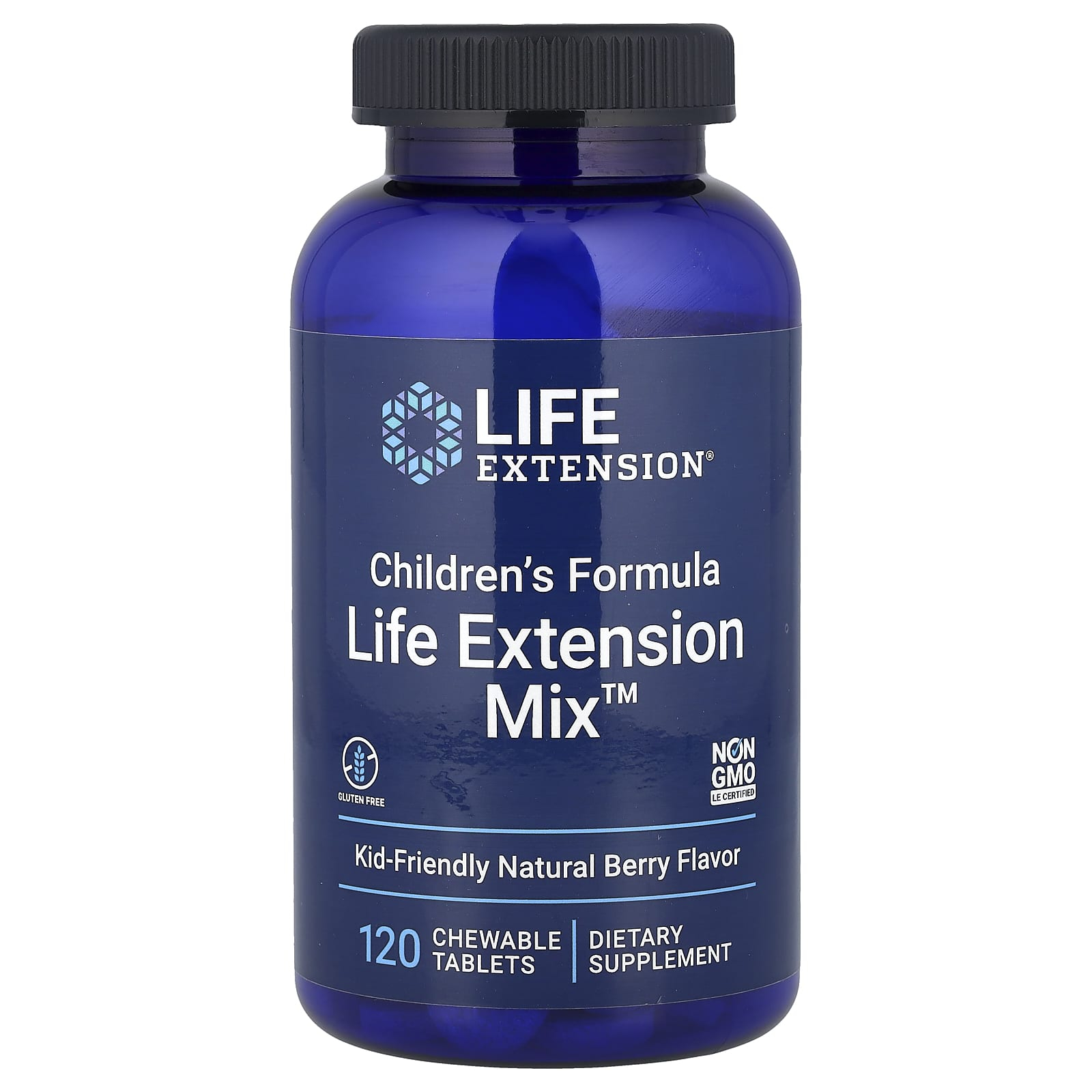 Children's Formula Mix Multivitamins, Life Extension este un complex multivitaminic premium creat special pentru nevoile nutriționale ale copiilor, într-o formulă echilibrată care susține creșterea, imunitatea, dezvoltarea cognitivă și vitalitatea zilnică. Produsul conține o combinație atent dozată de vitamine esențiale (A, C, D3, E, complexul B, acid folic, biotină, B12), minerale importante (iod, magneziu, zinc, seleniu, molibden, potasiu), dar și ingrediente specifice pentru protecția ochilor și a celulelor, precum extractul de gălbenele standardizat în luteină și zeaxantină, inozitol și coenzima Q10.