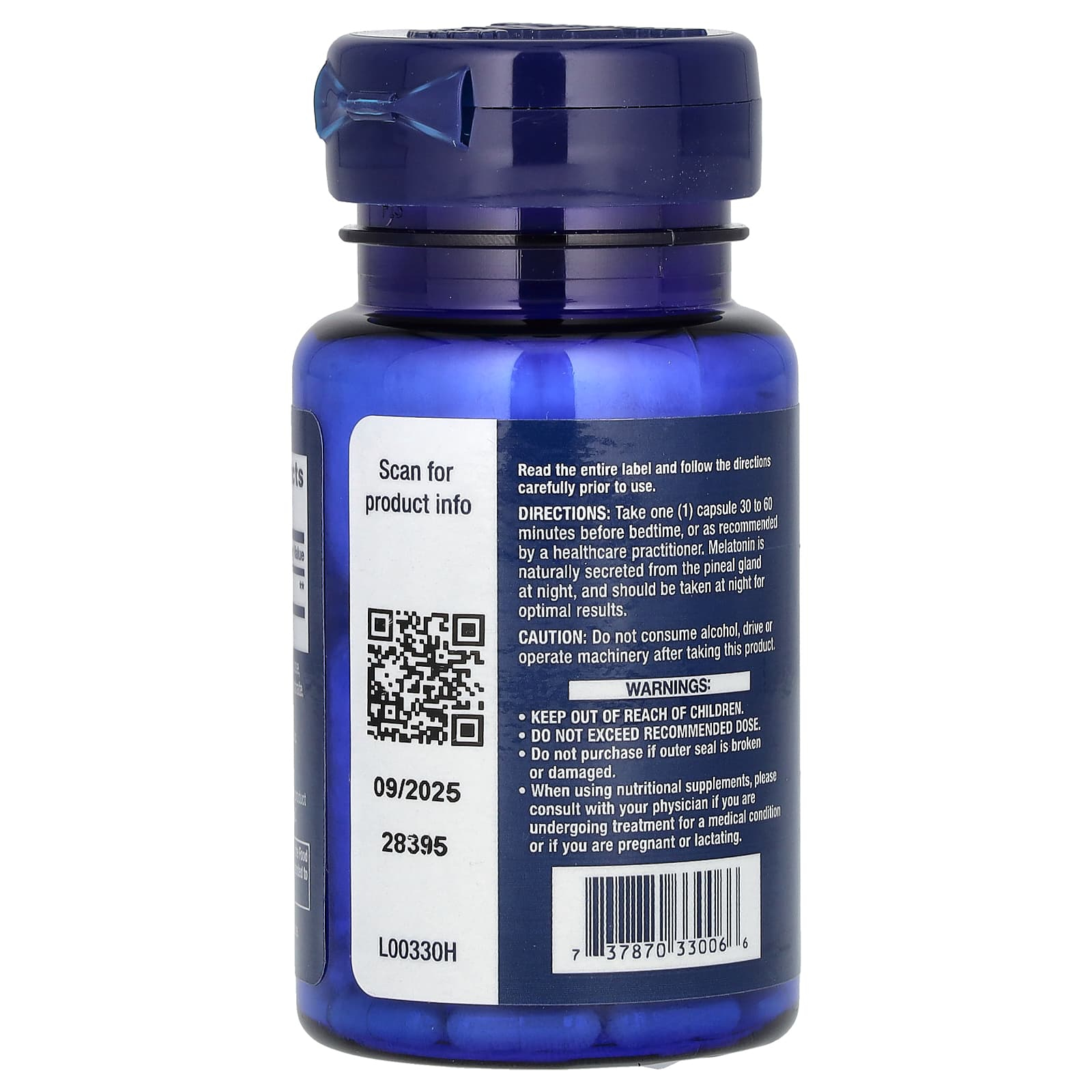 Luați o (1) capsulă cu 30 până la 60 de minute înainte de culcare sau conform recomandărilor unui medic. Melatonina este secretată în mod natural de glanda pineală pe timp de noapte și trebuie luată pe timp de noapte pentru rezultate optime.