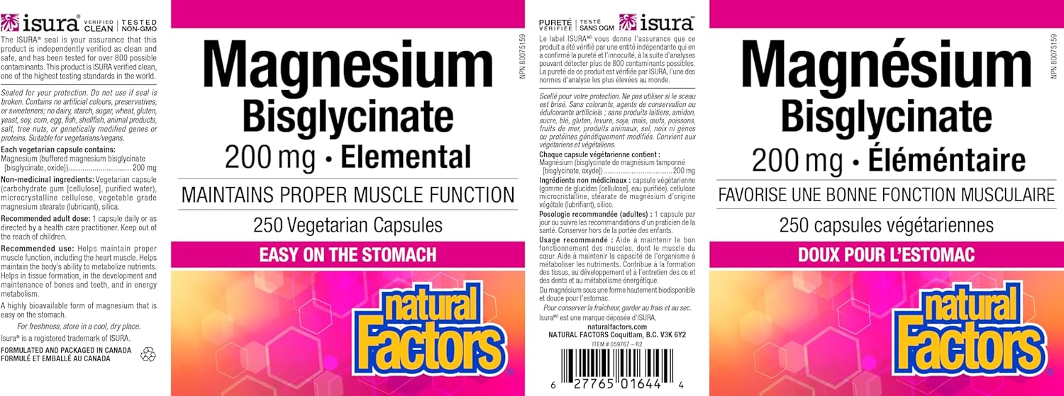 Magnesium Bisglycinate, 200 mg, Natural Factors se adresează persoanelor care urmăresc relaxare musculară și confort neuromuscular, susținerea sistemului nervos și a calității somnului, energie metabolică susținută, echilibru electrolitic, funcție cardiovasculară și o stare generală de bine, într-o formulă chelatată modernă, cu biodisponibilitate înaltă și toleranță digestivă excelentă.