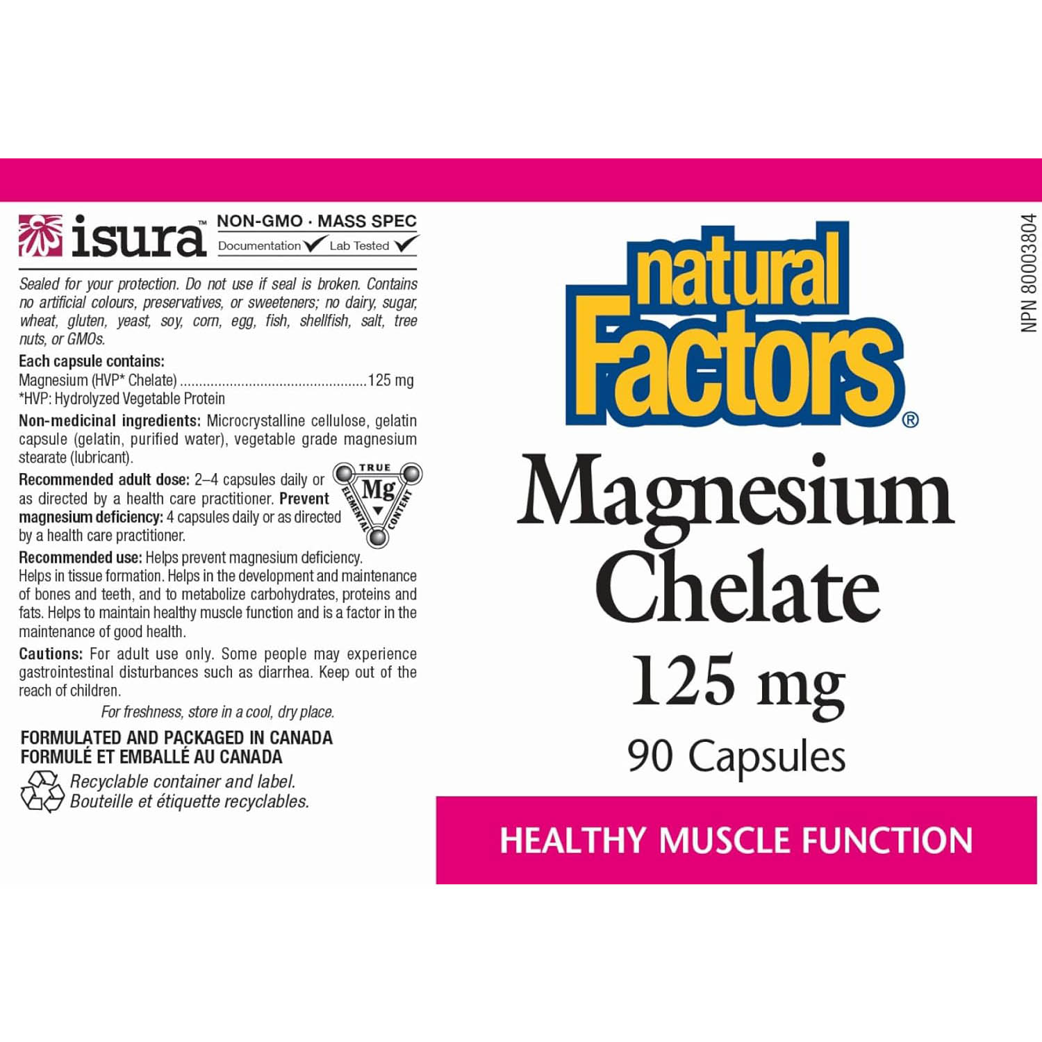 Magnesium Chelate, 125 mg, Natural Factors furnizează magneziu elementar sub formă de chelat cu proteine vegetale hidrolizate (HVP – Hydrolyzed Vegetable Protein), o formă proiectată pentru absorbție eficientă și toleranță digestivă blândă. Fiecare porție oferă 125 mg magneziu, un mineral esențial implicat în peste 300 de reacții enzimatice care orchestrează producția de energie (ATP), conducerea impulsurilor nervoase, contracția și relaxarea musculară, sinteza proteinelor, echilibrul electrolitic și menținerea structurii osoase. Formula pune accentul pe biodisponibilitate și pe o experiență de utilizare confortabilă, potrivită pentru rutinele zilnice ale persoanelor active, profesioniștilor, sportivilor sau oricui caută un sprijin coerent pentru relaxare, energie și claritate mentală.