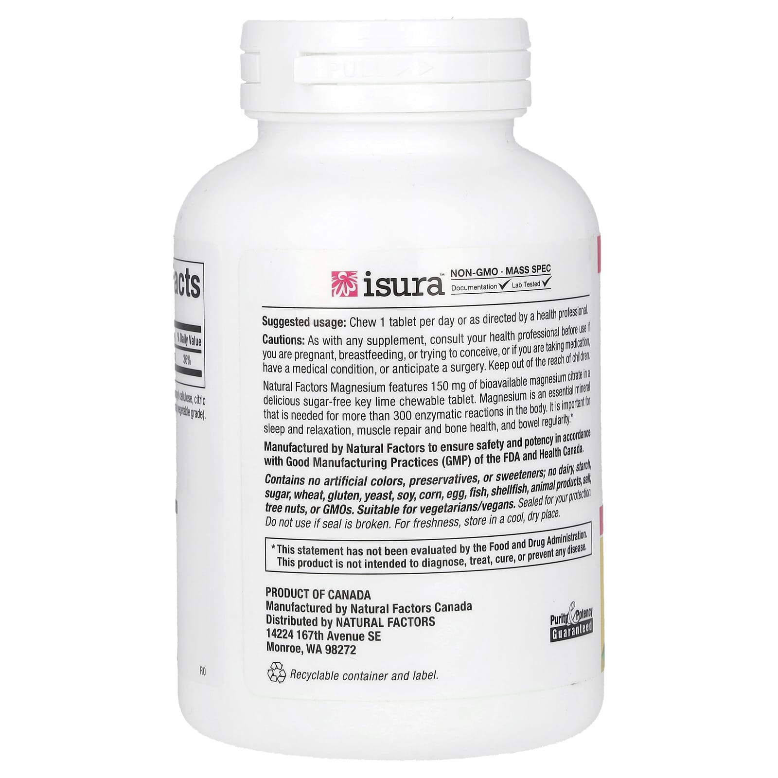 Fabricat de Natural Factors pentru a asigura siguranța și potența în conformitate cu bunele practici de fabricație (GMP) ale FDA și Health Canada.