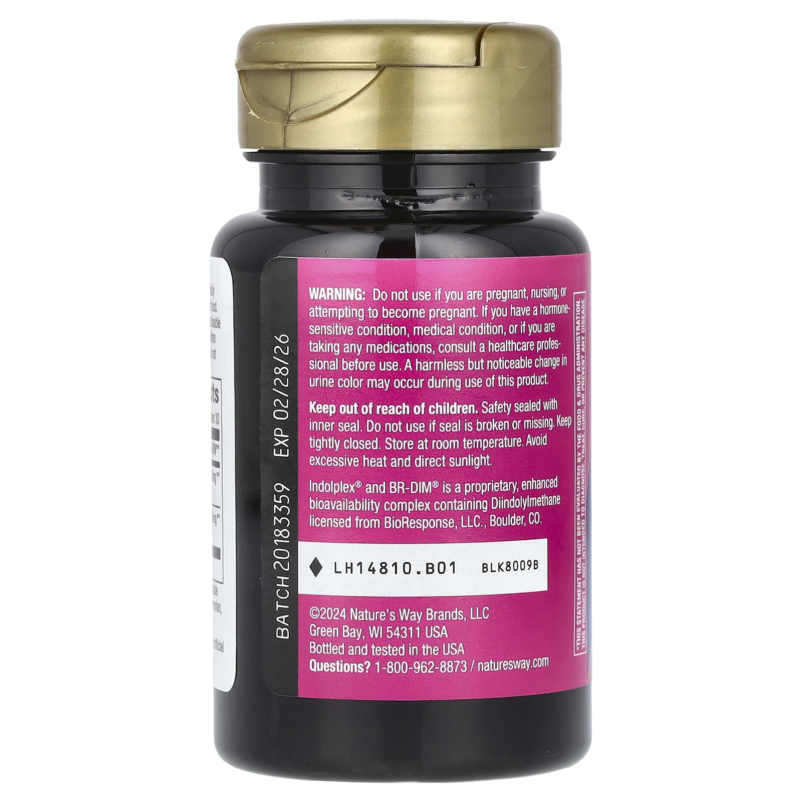 DIM-Plus (Echilibrul Hormonal), Nature’s Way este un supliment alimentar formulat special pentru susținerea echilibrului hormonal și a metabolismului sănătos al estrogenului, având la bază Indolplex® Diindolylmethane (BR-DIM®) Complex și Protectamins® Vegetable Blend din spanac, broccoli și varză. Formula furnizează 100 mg de diindolilmetan într-o formă concepută pentru o utilizare eficientă de către organism, alături de 100 mg amestec vegetal din legume crucifere și verzi, cunoscute pentru conținutul lor valoros de fitonutrienți.
