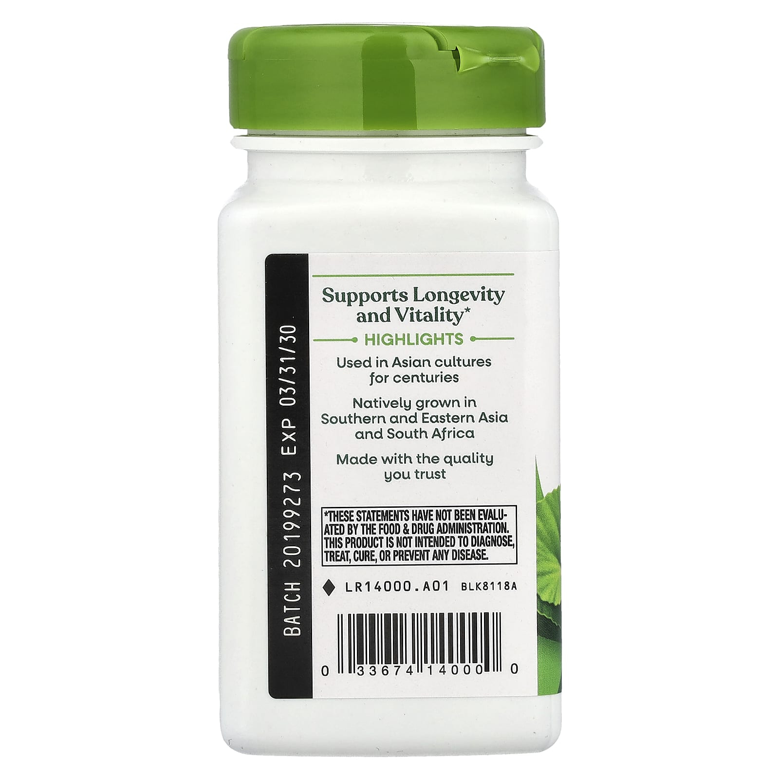 Gotu Kola Herb, 475 mg, Nature's Way este un supliment alimentar care conține concentrat din părțile aeriene ale plantei Centella asiatica, cunoscută și sub numele de Gotu Kola. Această plantă medicinală, venerată în medicina tradițională ayurvedică, este recunoscută pentru proprietățile sale adaptogene și pentru capacitatea de a susține funcțiile cognitive și sănătatea sistemului circulator.