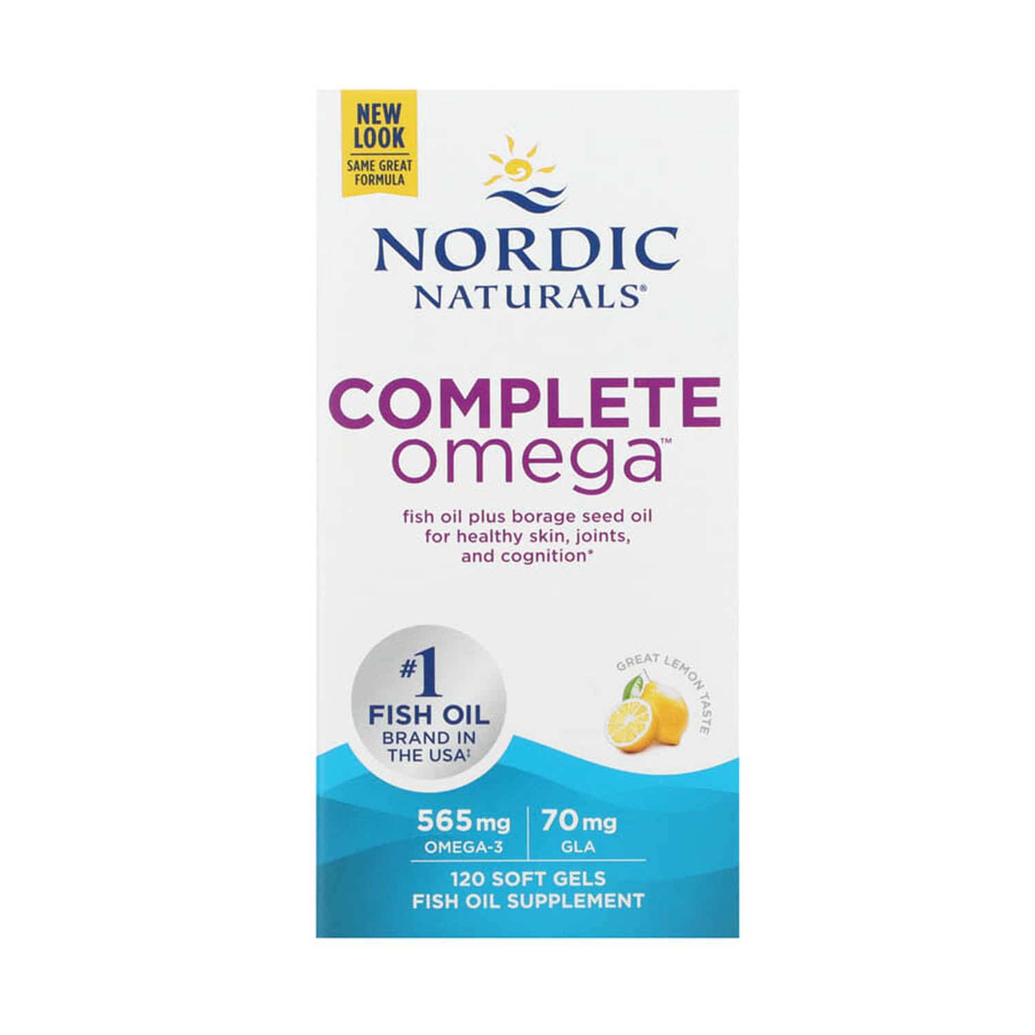 Complete Omega, Lemon, Nordic Naturals este o formulă inteligentă de acizi grași esențiali care combină benefic Omega-3, Omega-6 și Omega-9 într-un singur produs, pentru sprijinirea organismului din cap până-n picioare. O porție oferă un profil nutrițional echilibrat: 20 de calorii, 2 g grăsime totală (3% VD), 0 g grăsimi saturate, 0 g grăsimi trans, plus un spectru de lipide bioactive: Omega-3 total 565 mg cu EPA 270 mg și DHA 180 mg, Omega-6 240 mg cu GLA 70 mg, respectiv Omega-9 225 mg cu acid oleic (OA) 180 mg. Sinergia dintre EPA și DHA susține inima, creierul și vederea, în timp ce GLA din complexul Omega-6 contribuie la confortul pielii și al articulațiilor. Omega-9 completează profilul lipidic pentru o stare generală de bine.Nordic Naturals este recunoscut pentru puritate, prospețime și gustul natural de lămâie, ceea ce transformă rutina zilnică într-o experiență plăcută.