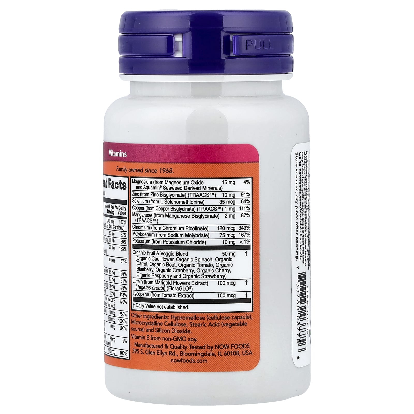 Multivitamine Daily Vits, Now Foods este un complex multivitaminic complet, conceput pentru a acoperi nevoile nutriționale de bază ale organismului și pentru a susține funcționarea optimă a tuturor sistemelor majore – imunitar, nervos, cardiovascular, osos și metabolic. Formula îmbină un spectru echilibrat de vitamine esențiale (A, C, D, E, K, complexul B) cu minerale biodisponibile și un amestec organic de fructe și legume, completat de antioxidanți importanți precum luteina și licopenul.