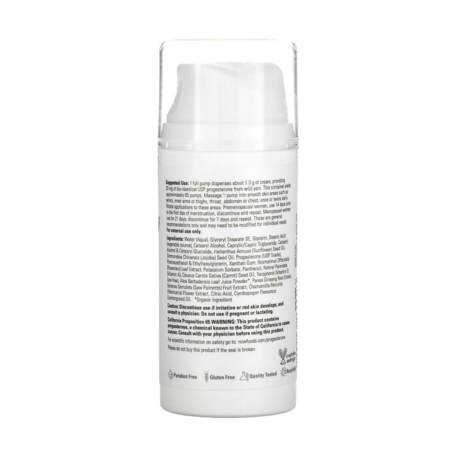 Progesterone from Wild Yam, Balancing Skin Cream este o cremă premium concepută pentru a susține echilibrul natural al organismului și pentru a îngriji pielea în același timp. Fiecare apăsare a pompei livrează 20 mg progesteron natural (grad USP), într-o bază catifelată, ușor de întins, formulată cu emolienți și antioxidanți de calitate: glicerină, trigliceride caprilice/caprice (MCT), ulei de semințe de floarea-soarelui, ulei de jojoba, tocoferol (vitamina E – fără soia) și palmitat de retinil (vitamina A). Complexul botanic inteligent – aloe vera, extract de frunze de rozmarin, ginseng, saw palmetto, mușețel și o notă discretă de lemongrass – completează experiența cu efecte de calmare, protecție și revigorare a pielii. Formula este fără coloranți artificiali, fără parfumuri adăugate, fără parabeni, fără gluten, vegană și netestată pe animale, iar calitatea este atent verificată.