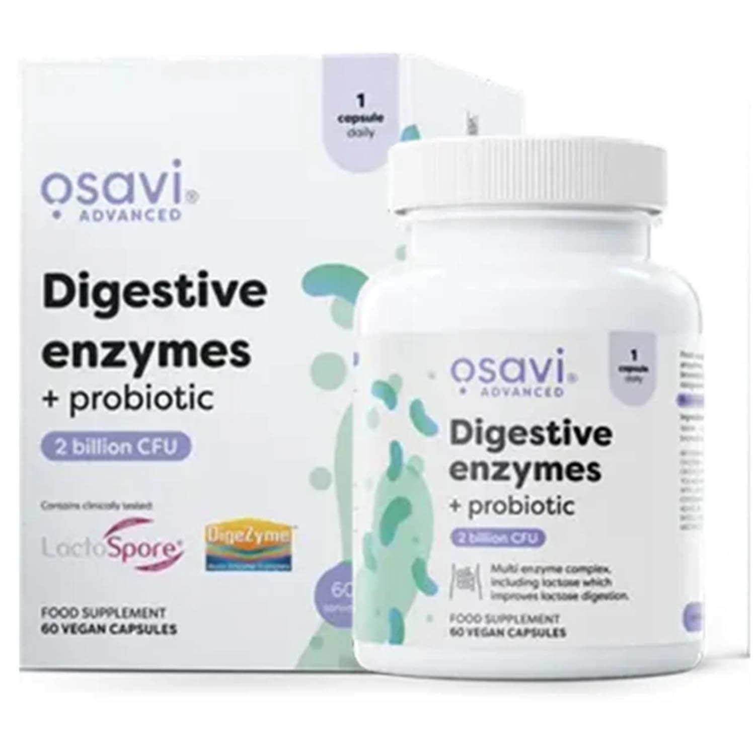 Osavi mizează pe ingrediente standardizate, tulpini probiotice robuste și dozaje transparente. LactoSpore® asigură viabilitate ridicată, DigeZyme® furnizează un spectru enzimatic complet, iar papaina și bromelaina completează digestia proteinelor din meniurile moderne. Formula este gândită pentru simplitate în utilizare, consecvență și rezultate percepute rapid la nivel de confort postprandial.