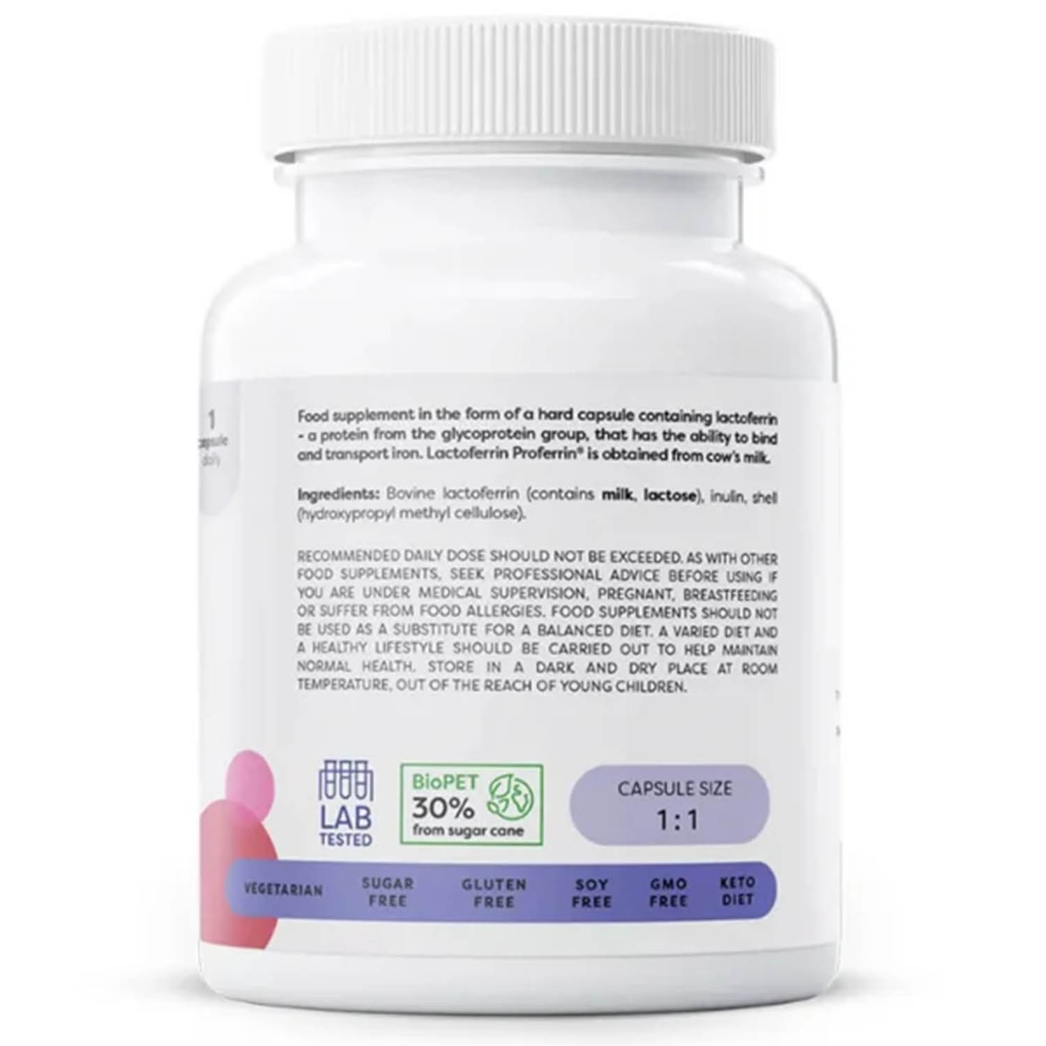 Lactoferrina este o glicoproteină prezentă în colostru și în laptele mamiferelor, fiind cunoscută pentru capacitatea sa de a lega fierul. Această caracteristică îi conferă proprietăți antimicrobiene, antiinflamatorii și antioxidante, făcând-o un aliat de nădejde în menținerea sănătății. Lactoferrina joacă un rol crucial în reglarea absorbției fierului în intestin și transportul acestuia în sânge, contribuind la menținerea unui echilibru sănătos al fierului în organism.